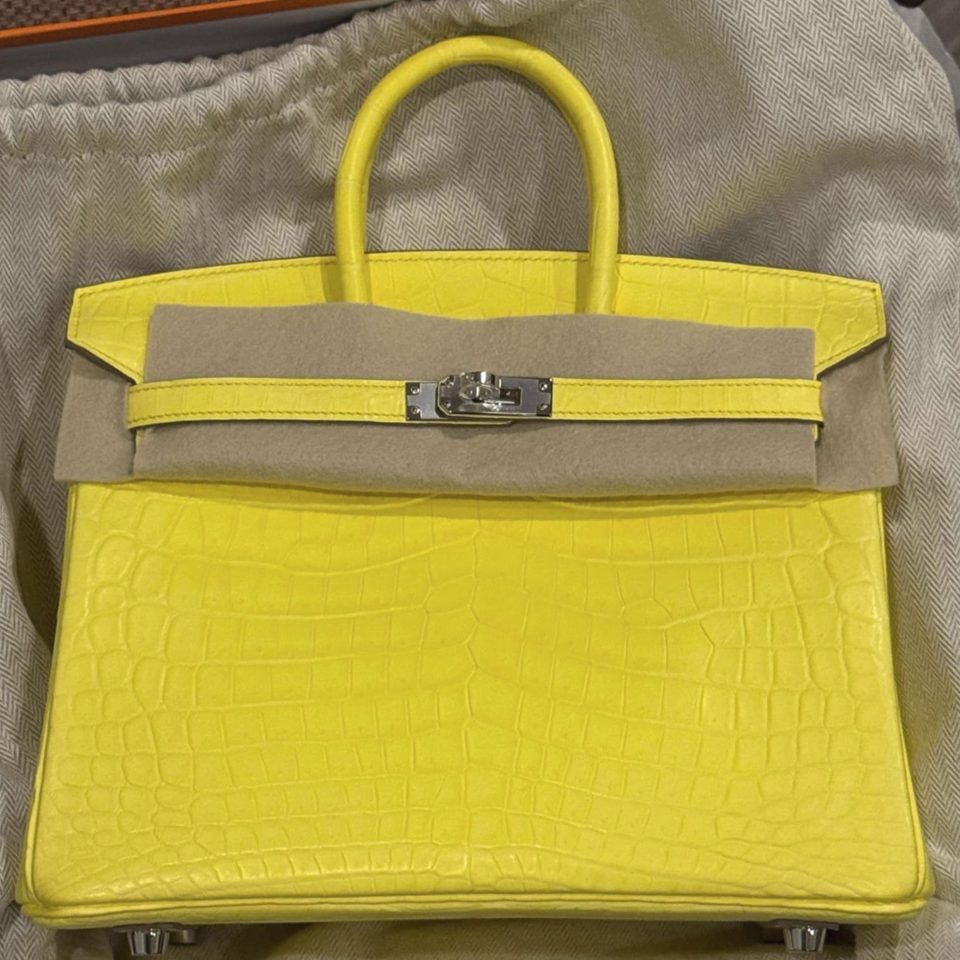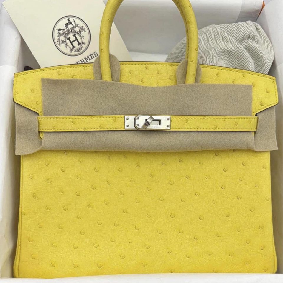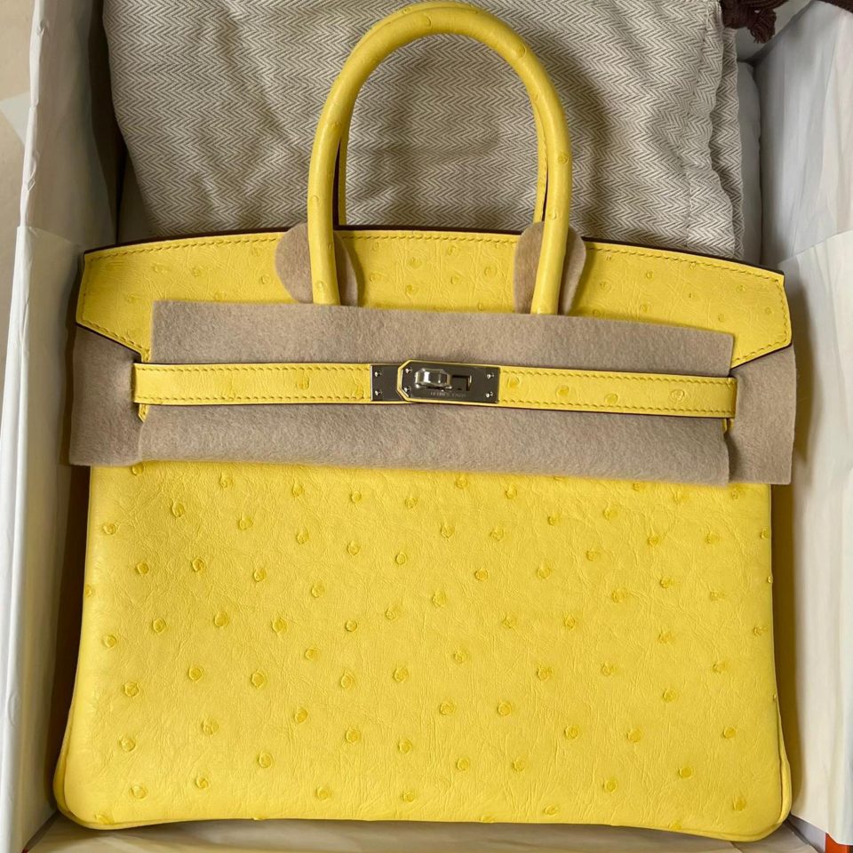 Birkin 25 Jaune Citron Ostrich Stamp U