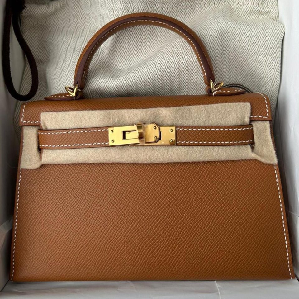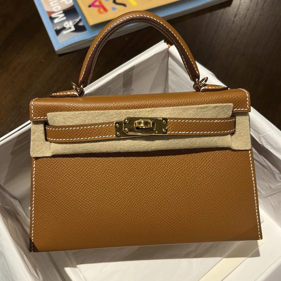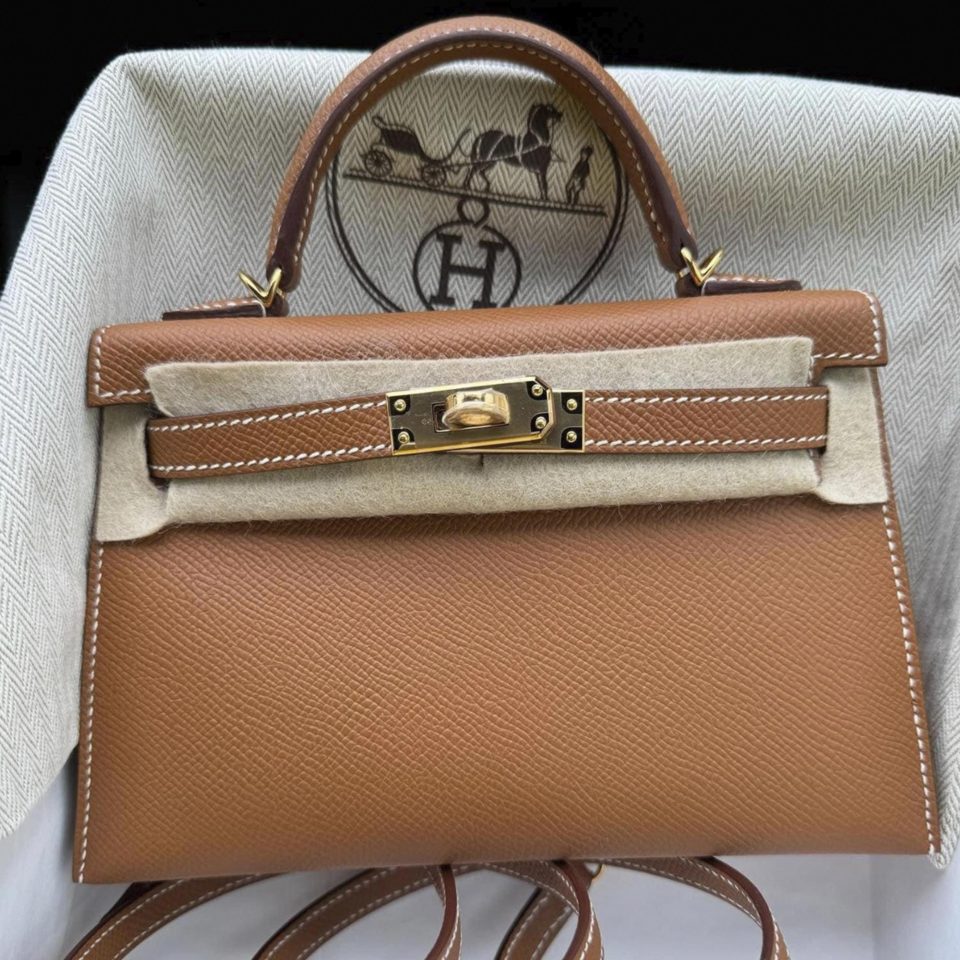 Kelly 20 Mini Etoupe Epsom Gold Hardware Stamp W