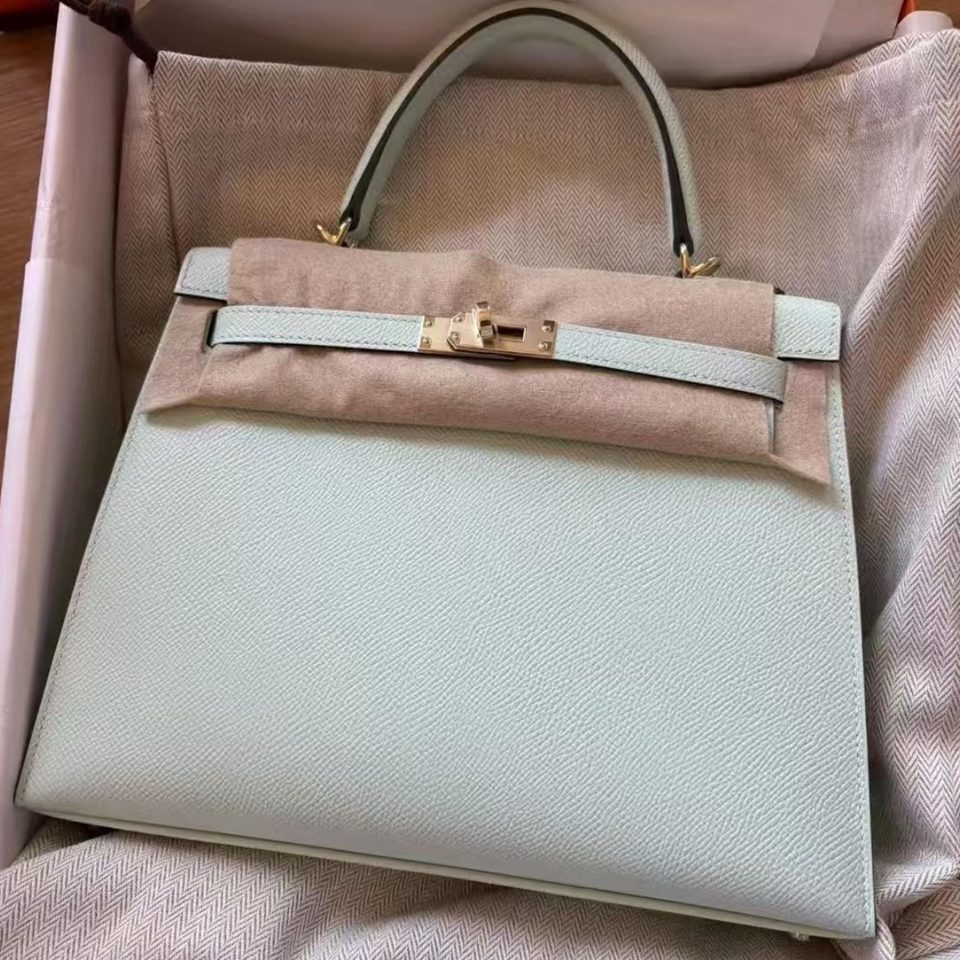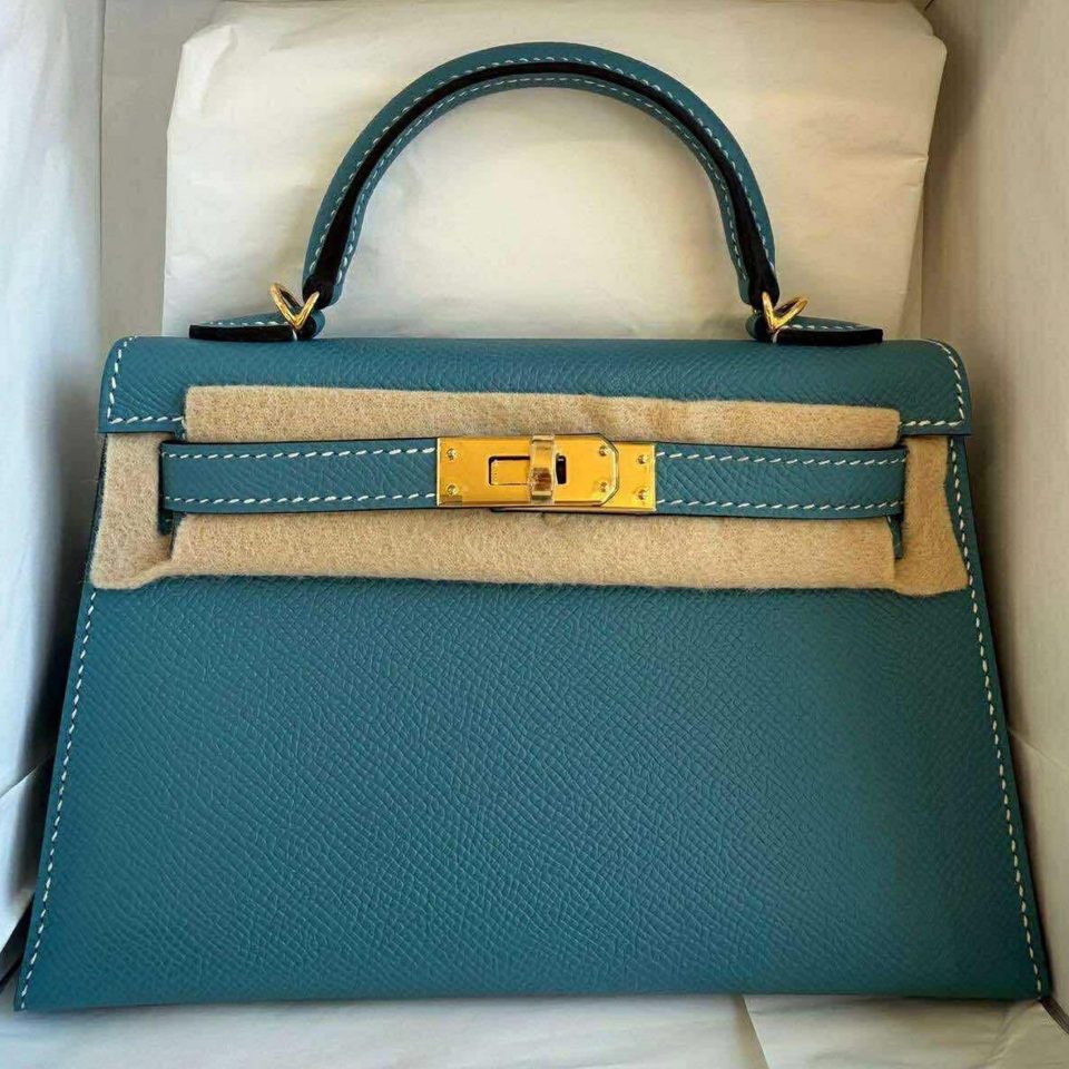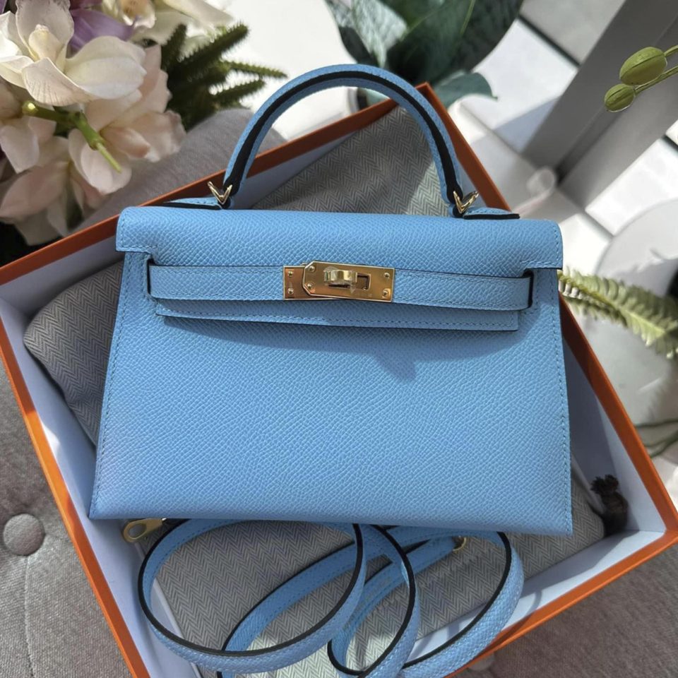 Kelly 20 Mini Celeste Epsom Gold Hardware Stamp B