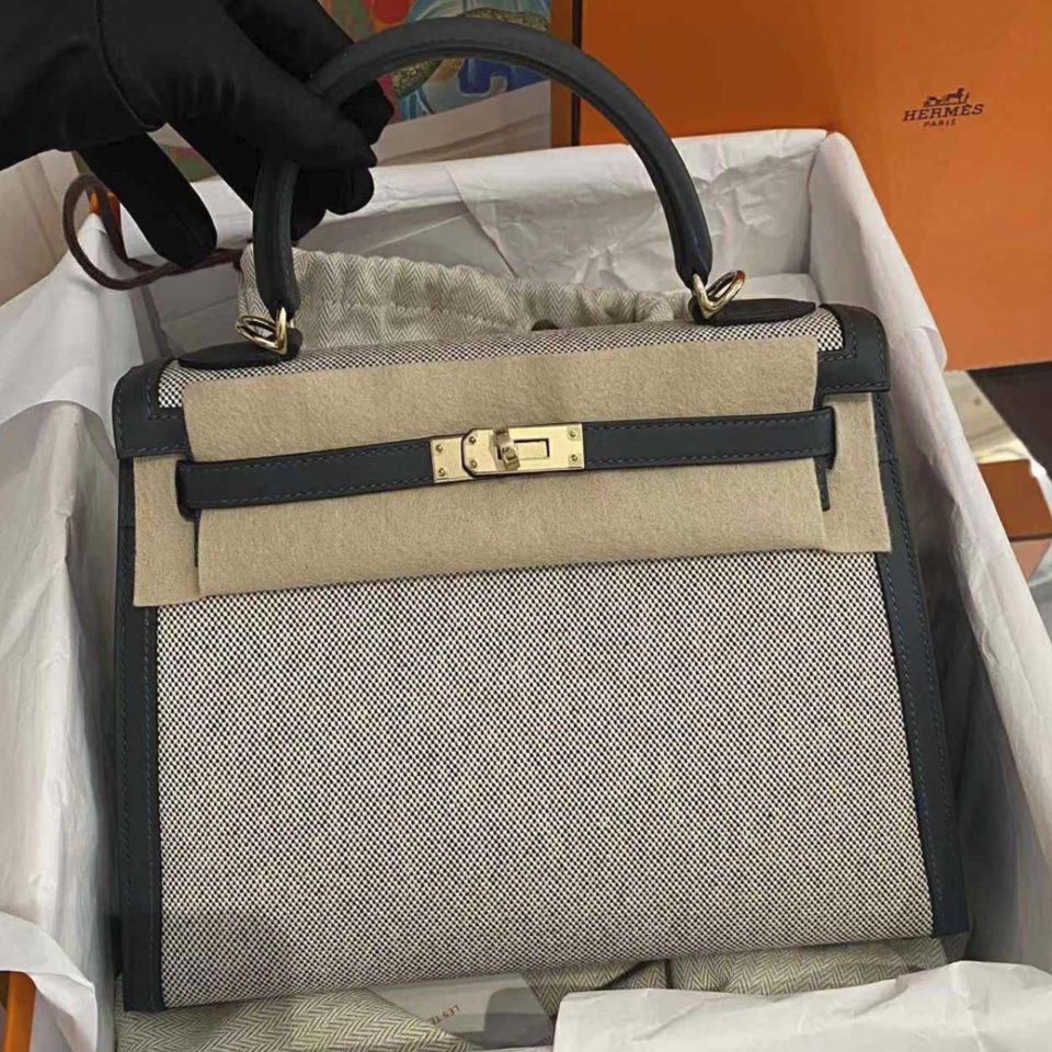 Birkin 25 Ardoise Toile Gold Hardware Stamp K