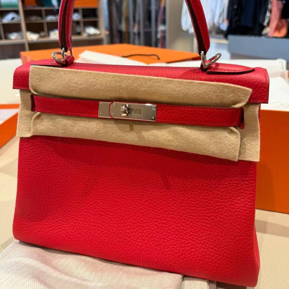 Kelly 28 Rouge Radieux Togo Palladium Hardware Stamp K