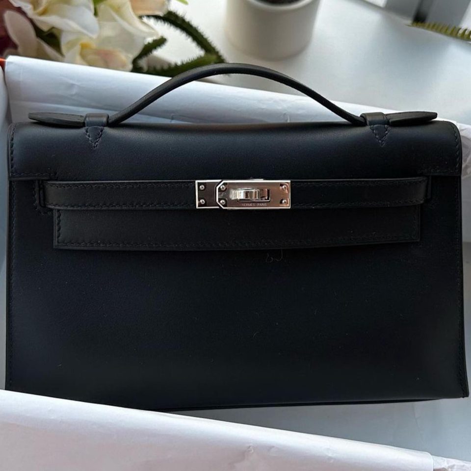 Kelly Pochette HSS Black/Gris Perle Inside Palladium Hardware Stamp K
