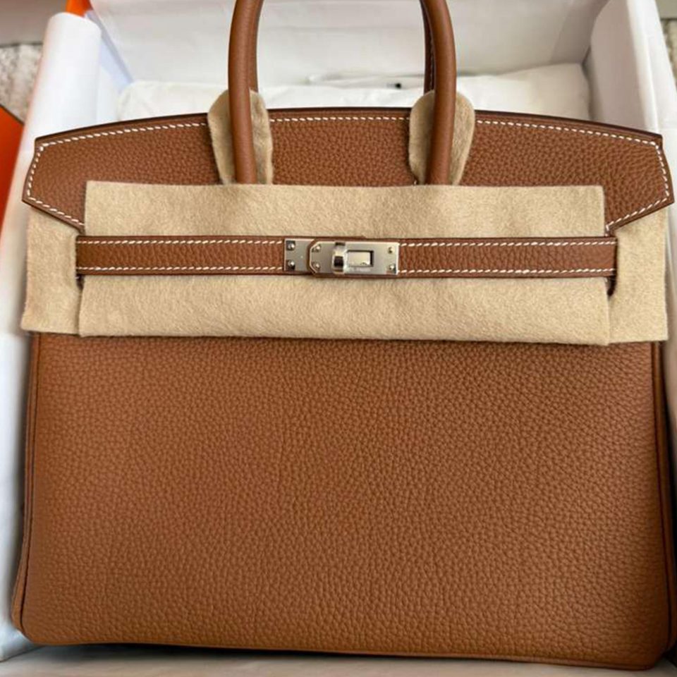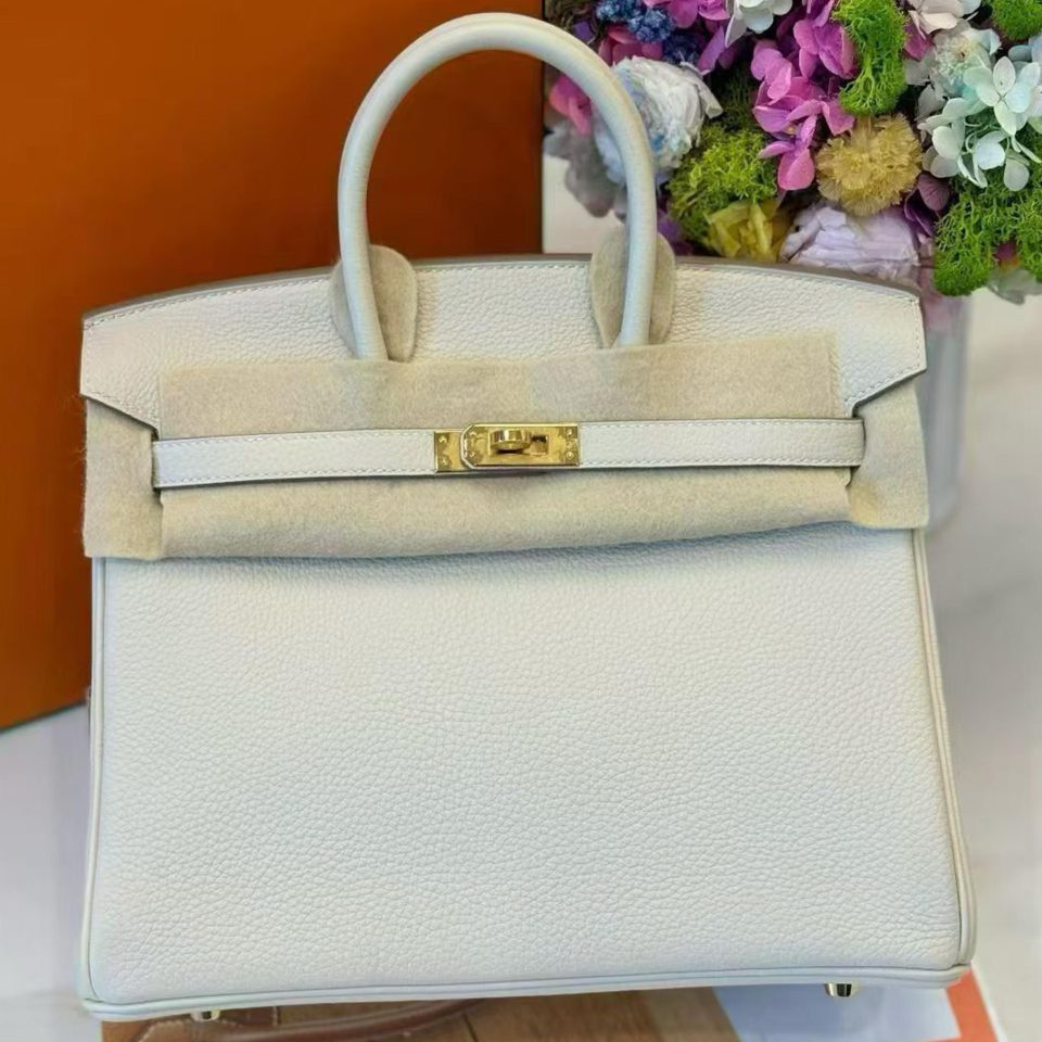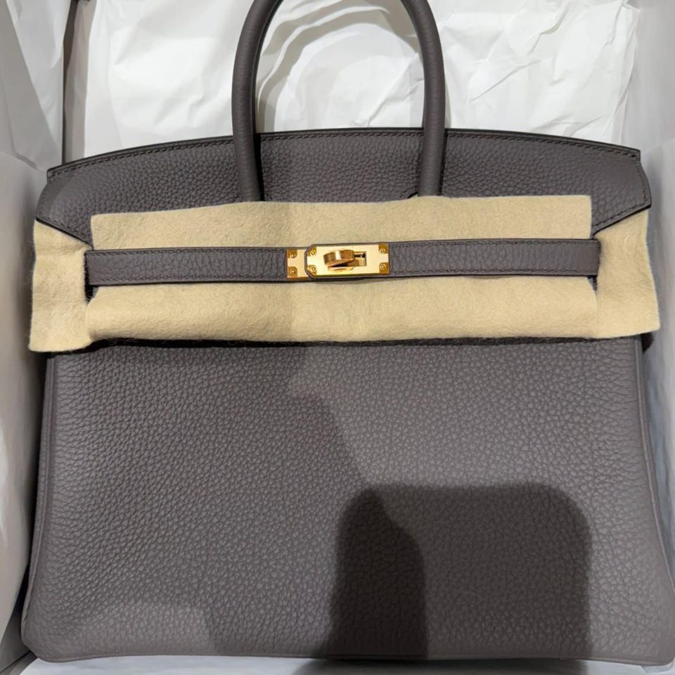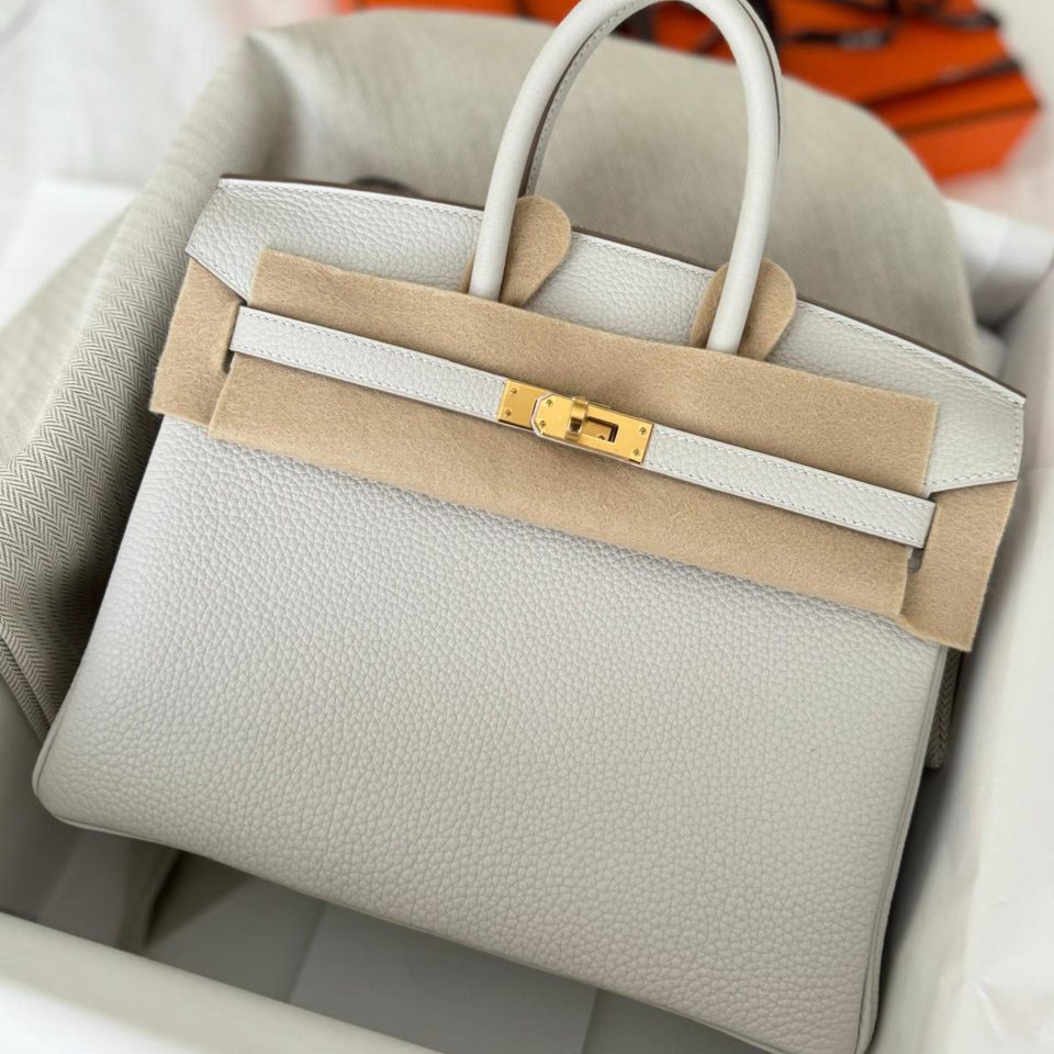 Birkin 25 Gris Neve Togo Gold Hardware Stamp B