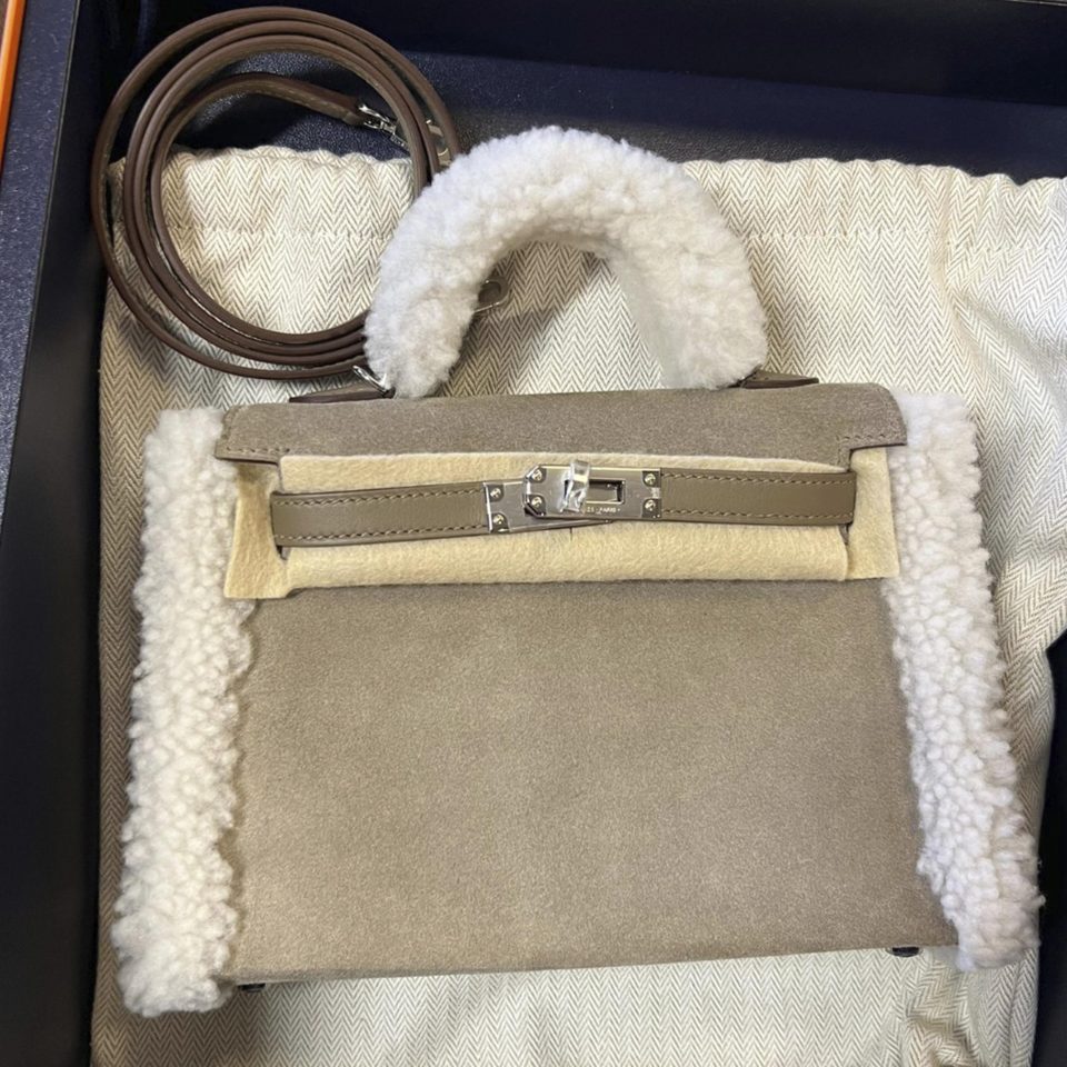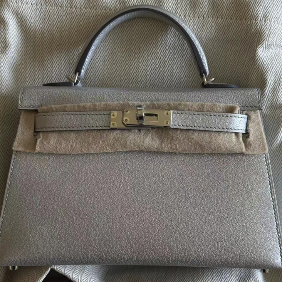 Kelly 20 Mini Touch Gris Meyer/Ficelle Palladium Hardware Stamp K