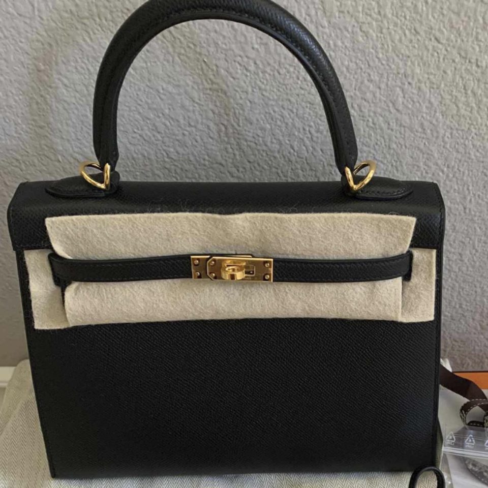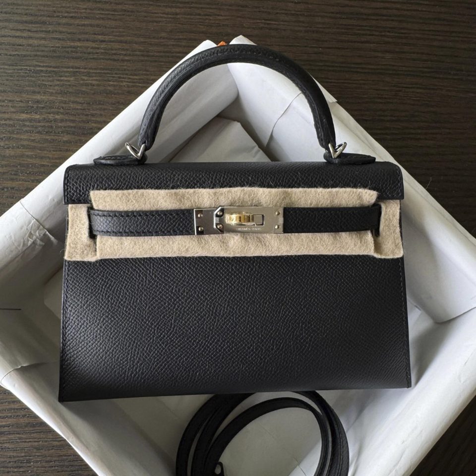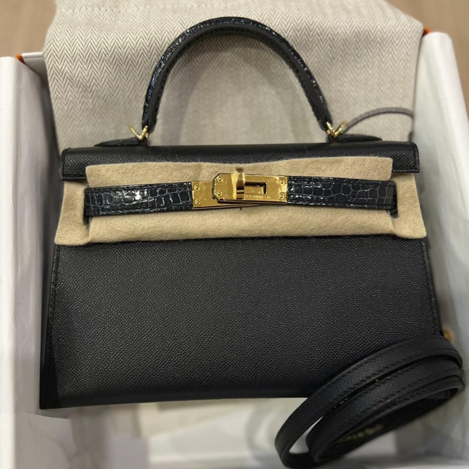 Kelly 20 Mini Black Epsom Gold Hardware Stamp W