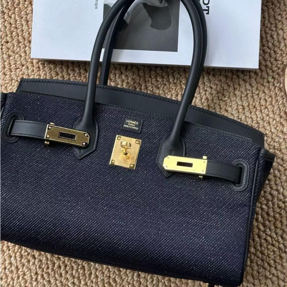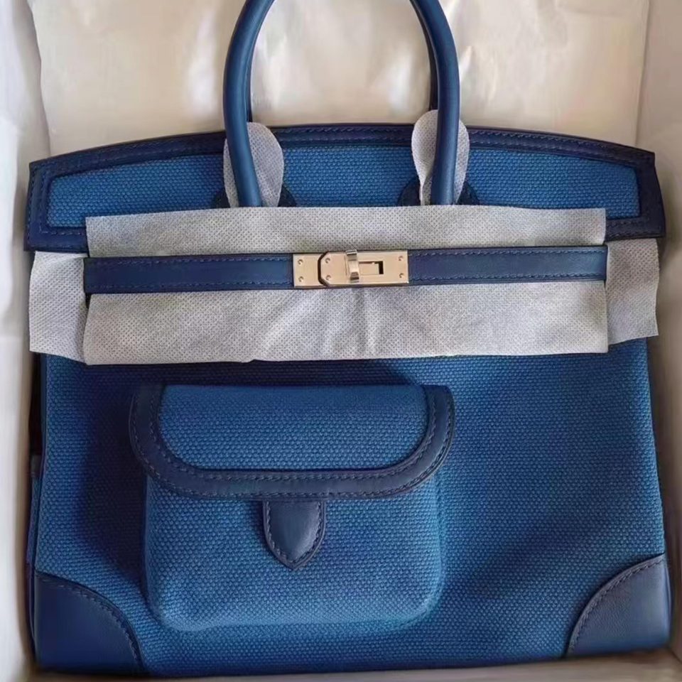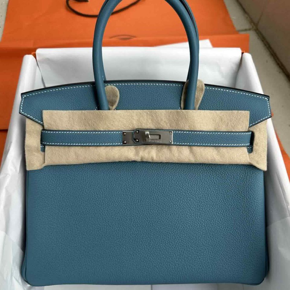Birkin 35 Blue Jean Palladium Hardware Stamp H