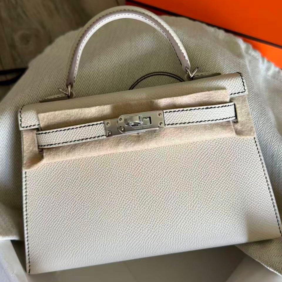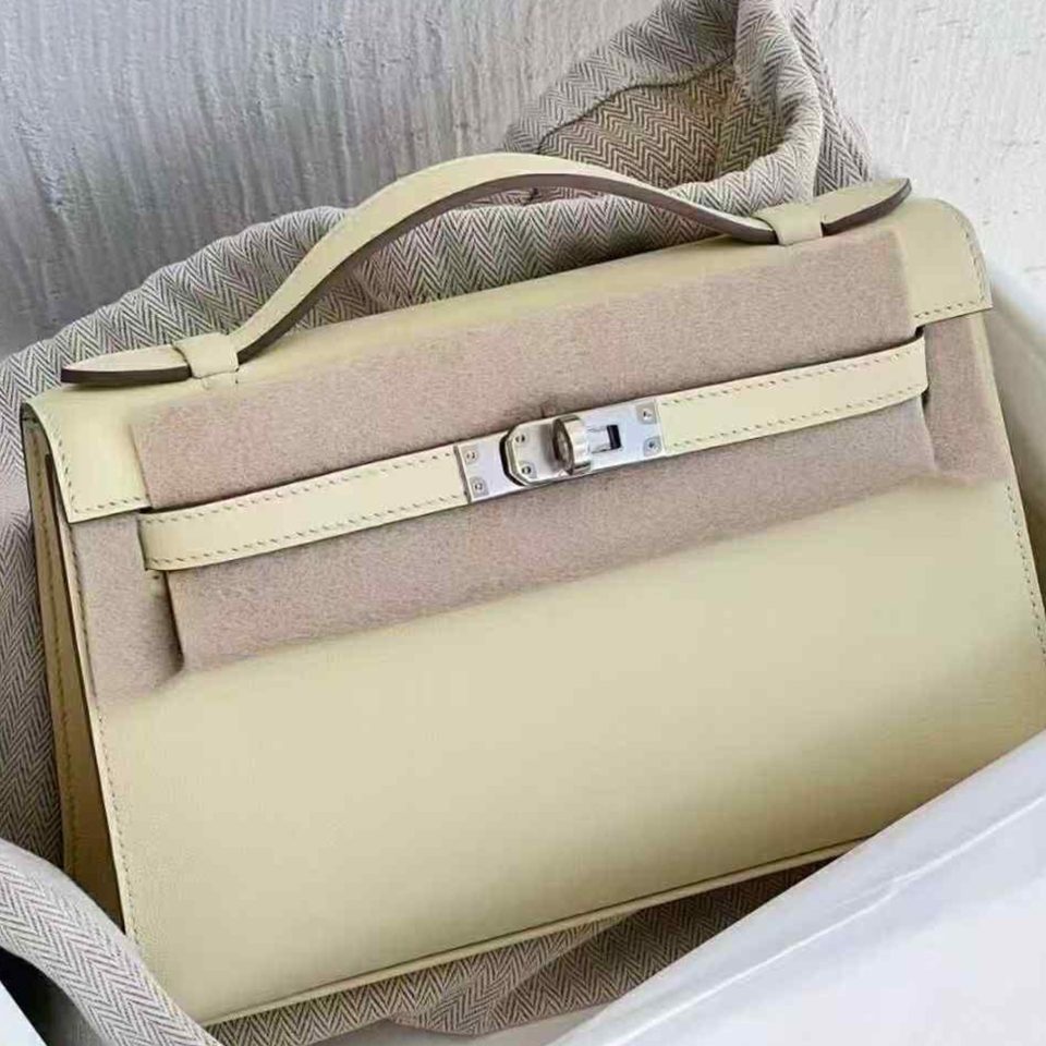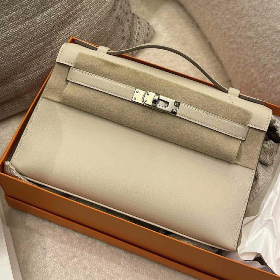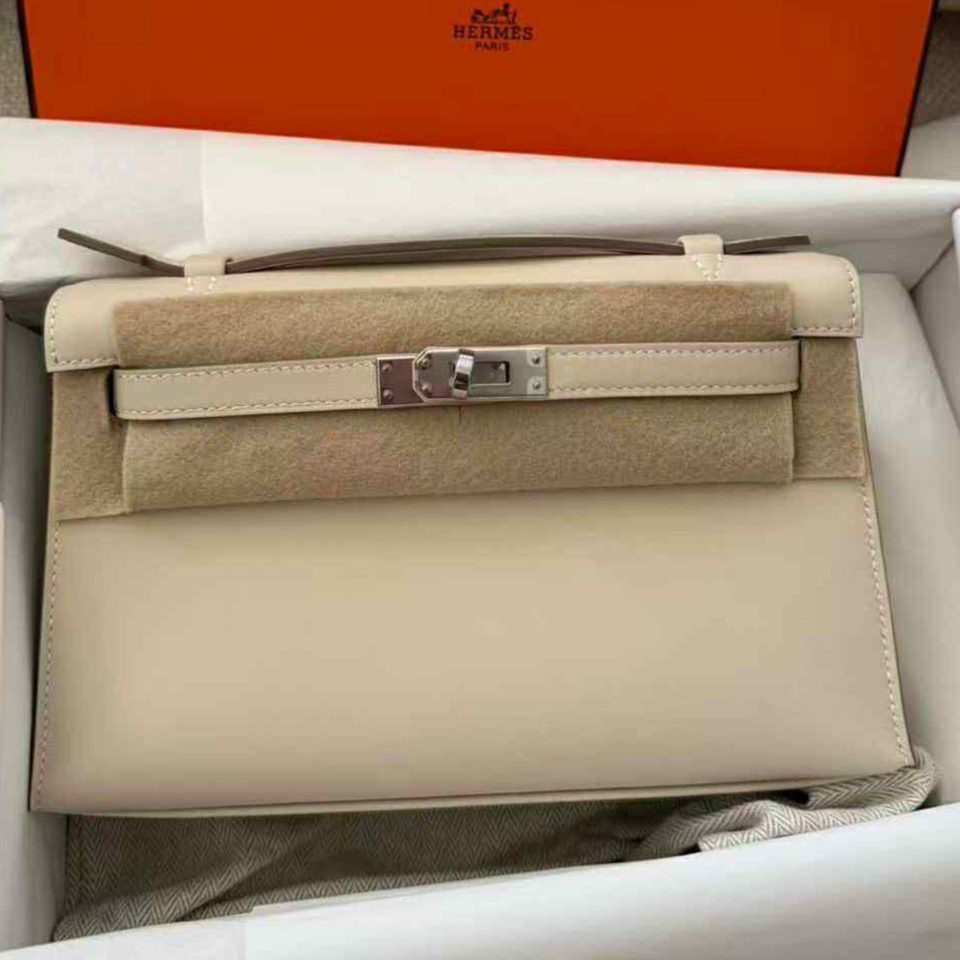 Kelly Pochette Craie Palladium Hardware Stamp K