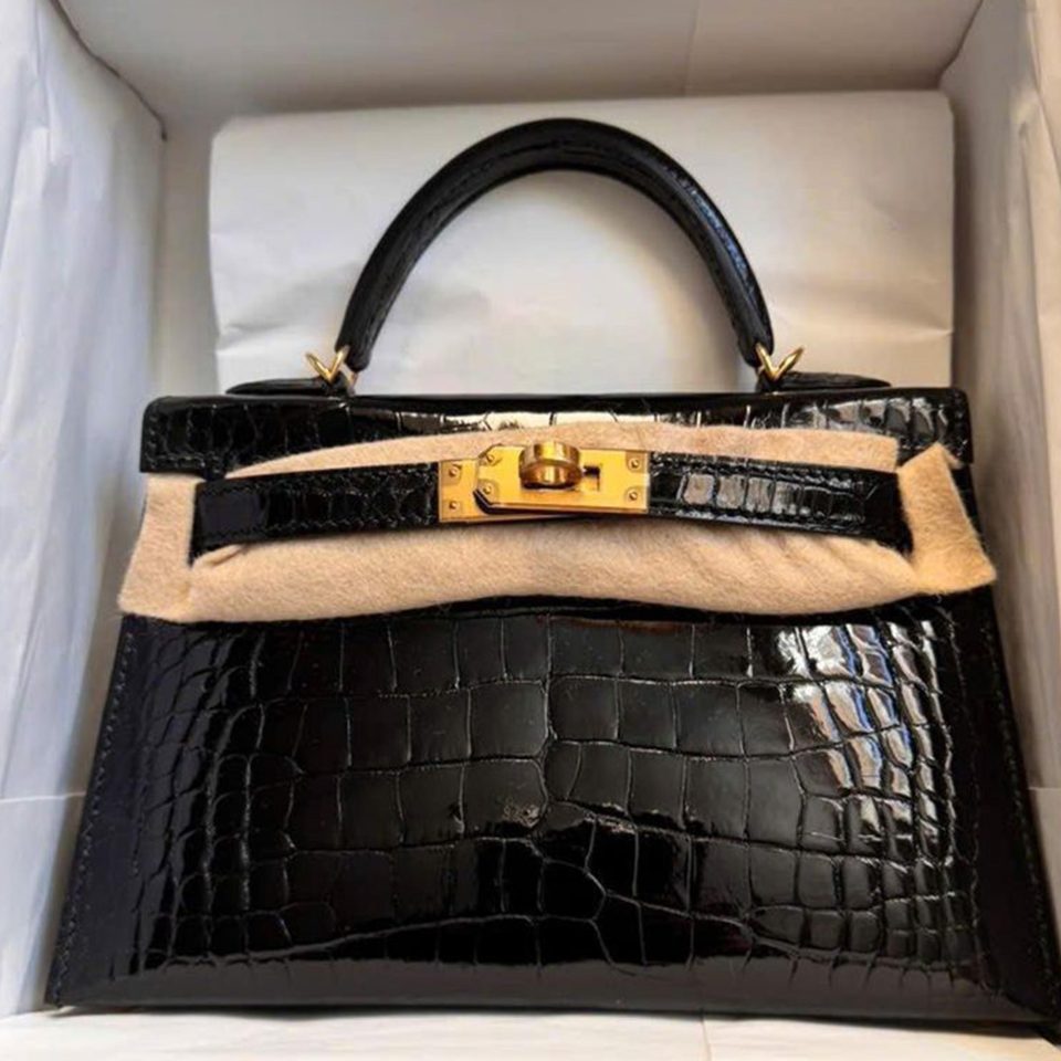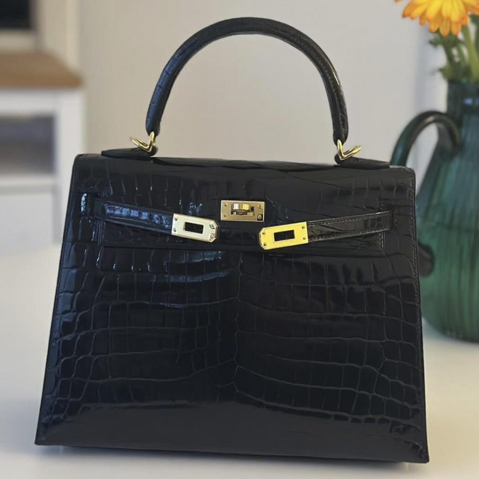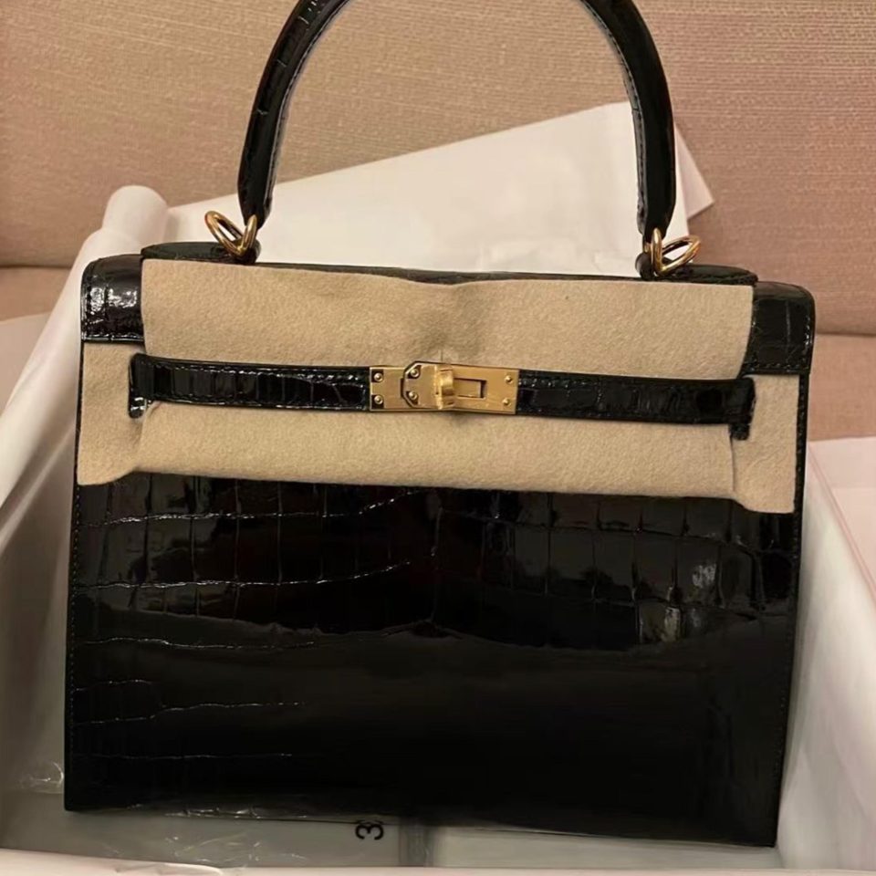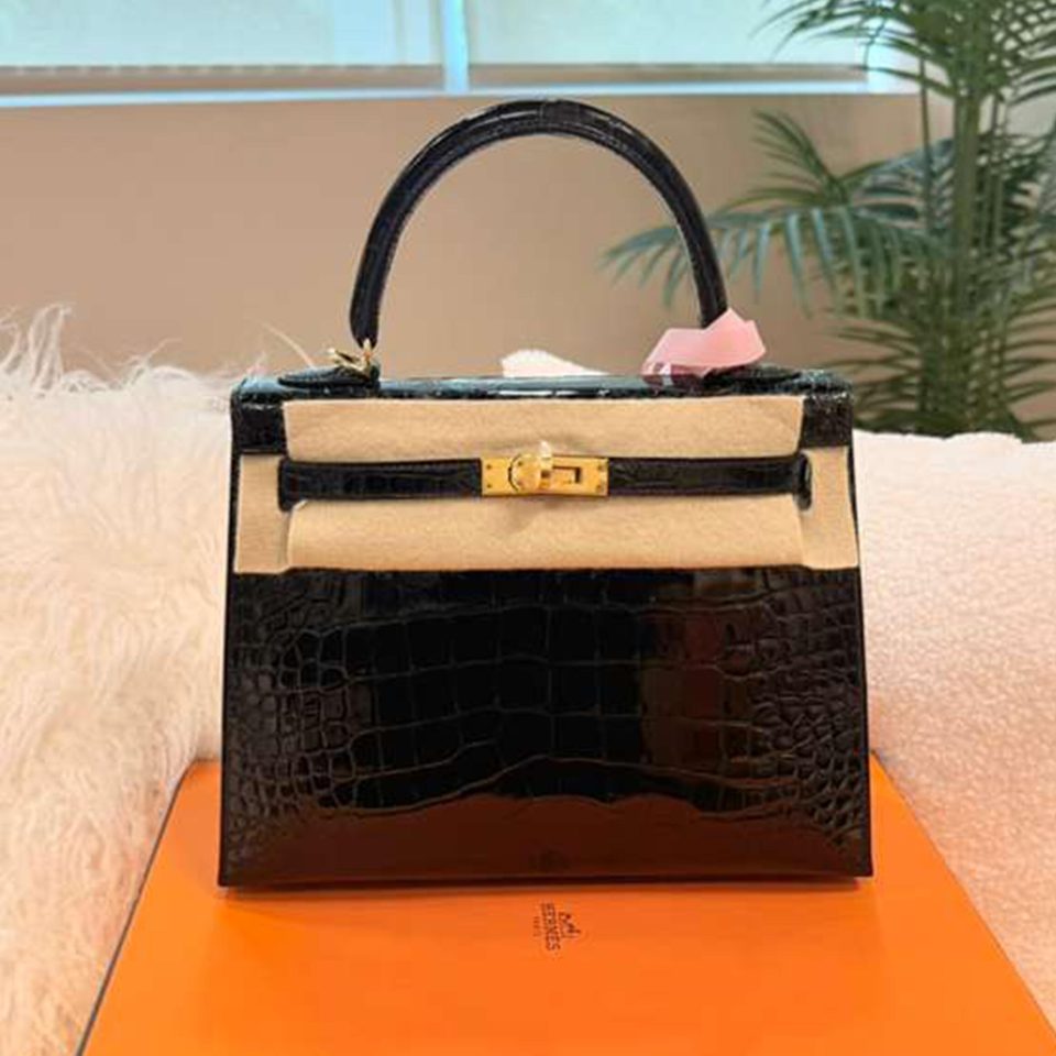 Kelly 25 Black Shiny Gold Hardware Stamp U