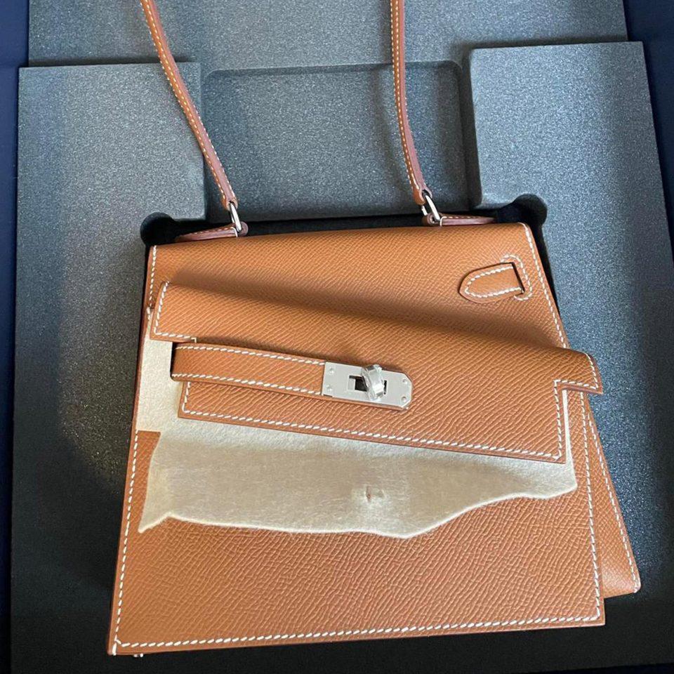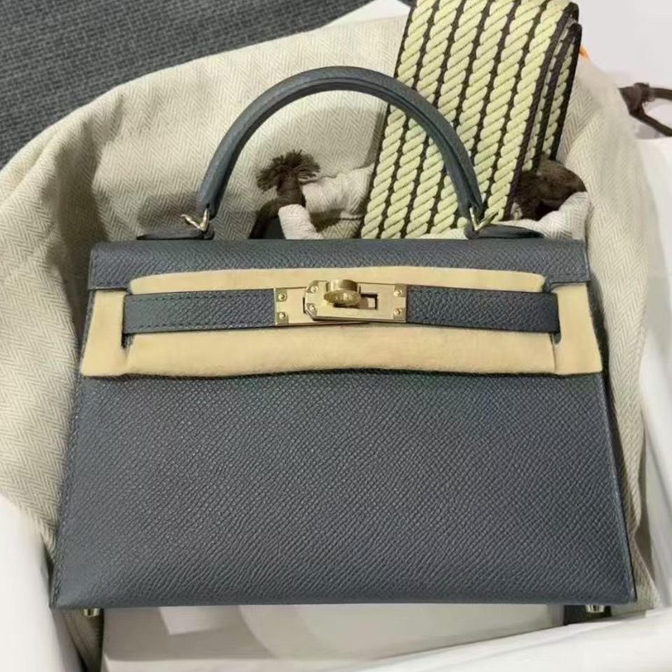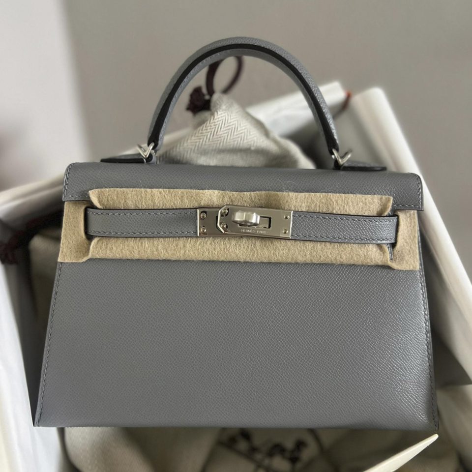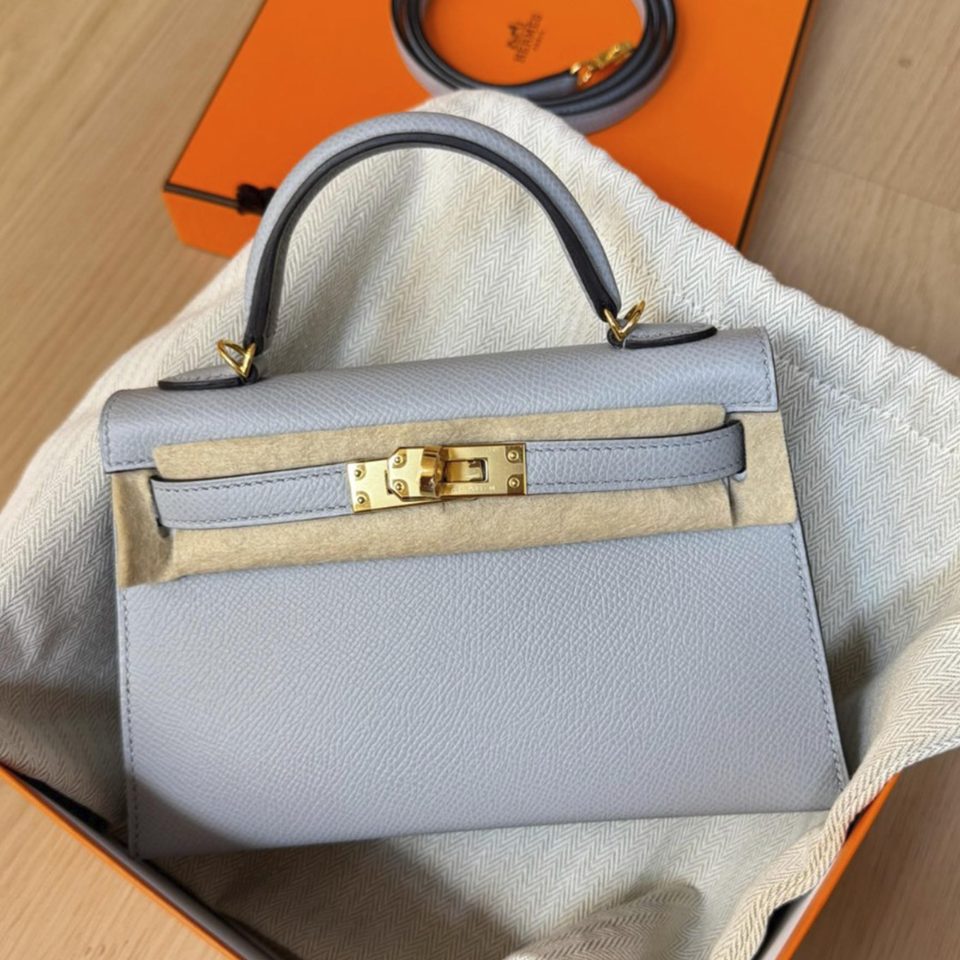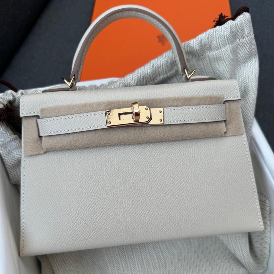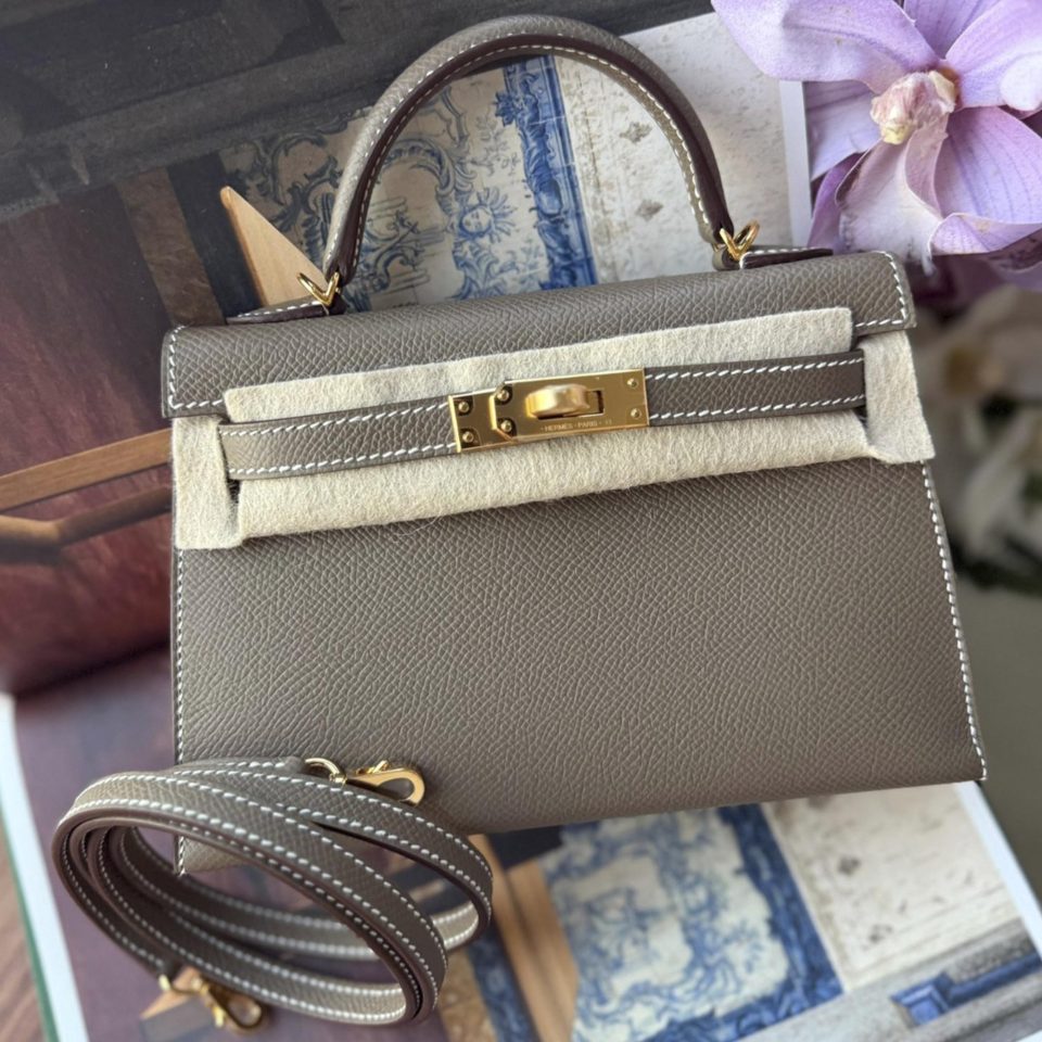 Kelly 20 Mini Etoupe Epsom Gold Hardware Stamp K