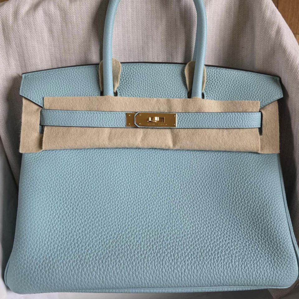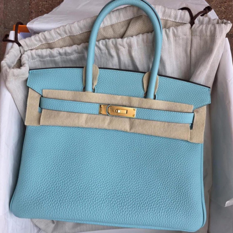 Birkin 30 Bleu Atoll Gold Hardware Stamp T