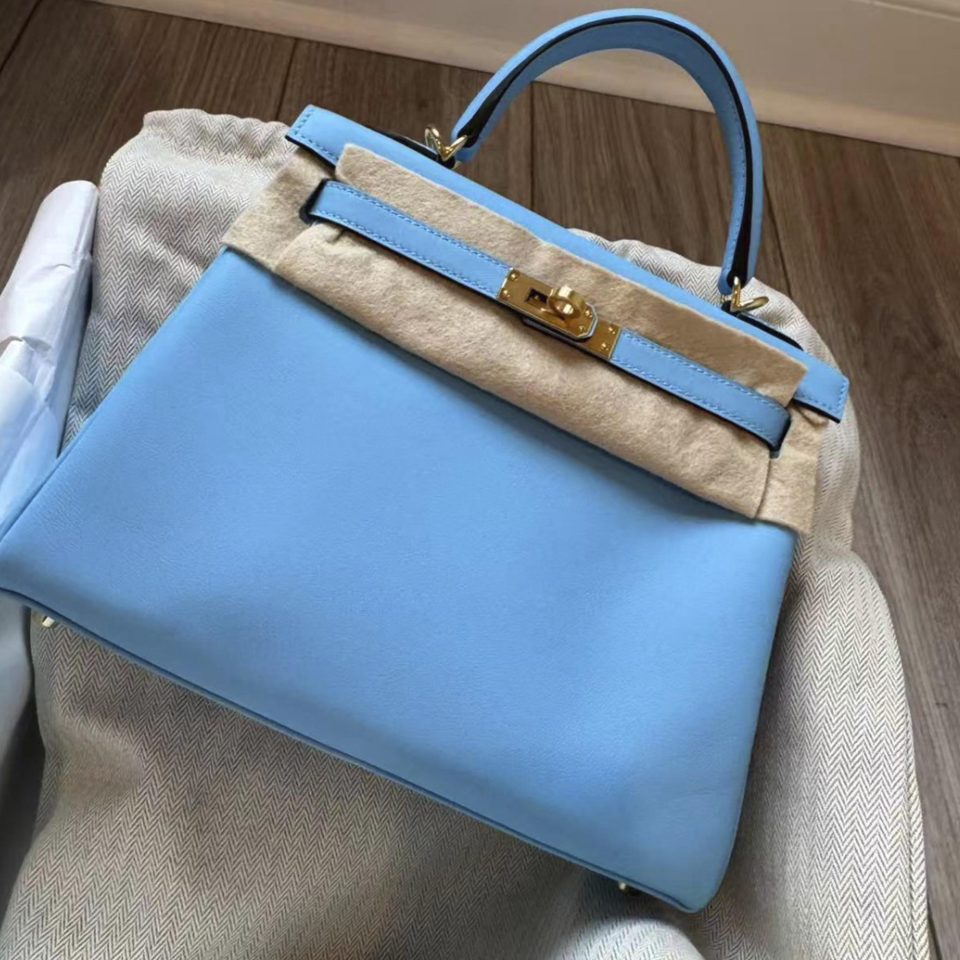 Kelly 25 Bleu Atoll Epsom Gold Hardware Stamp T