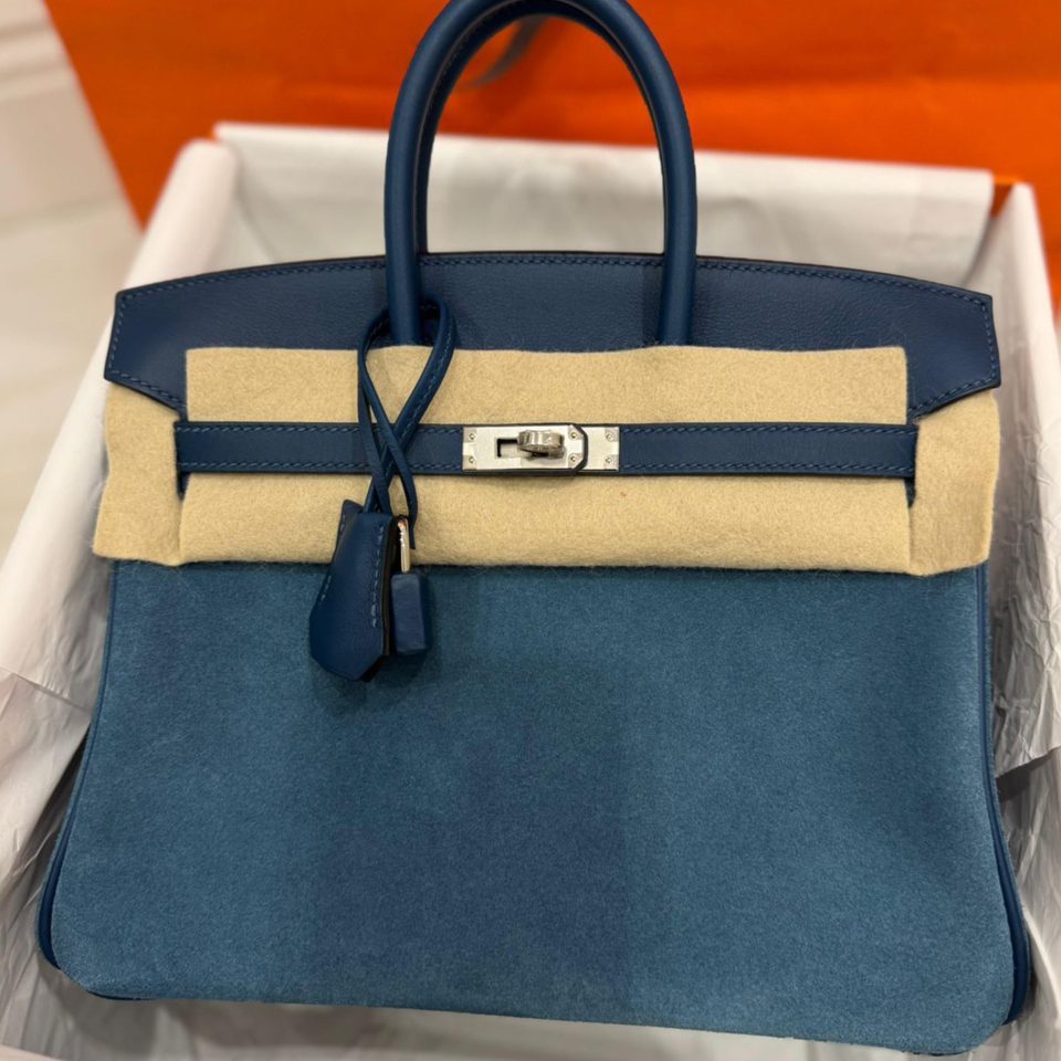 Birkin 25 Blue Sapphire Matte Palladium Hardware Stamp K