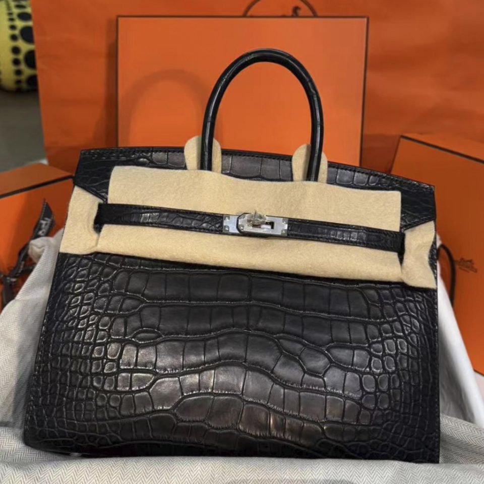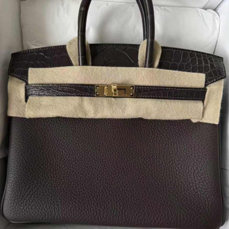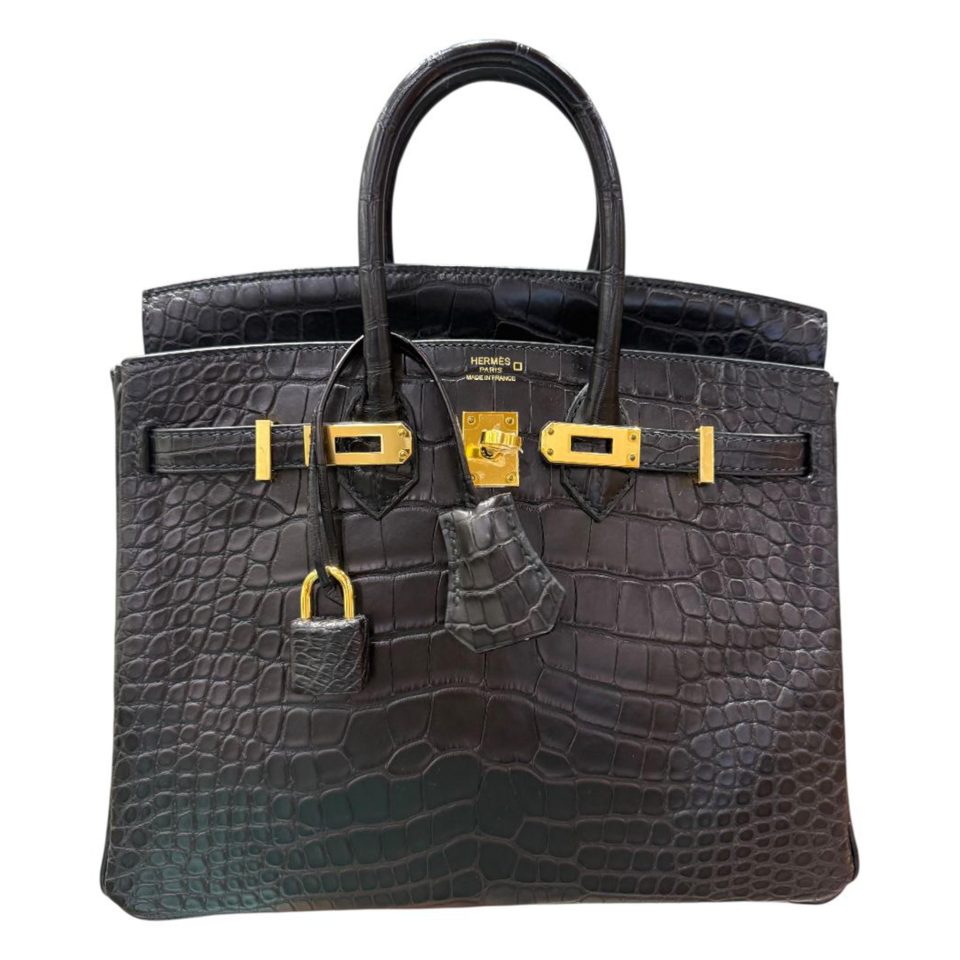 Birkin 25 Trench Matte Porousus Crocodile stamp Square Gold Hardware Stamp L
