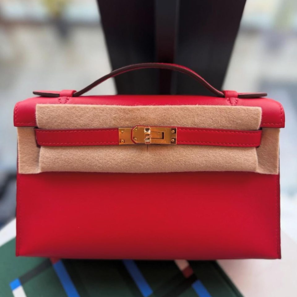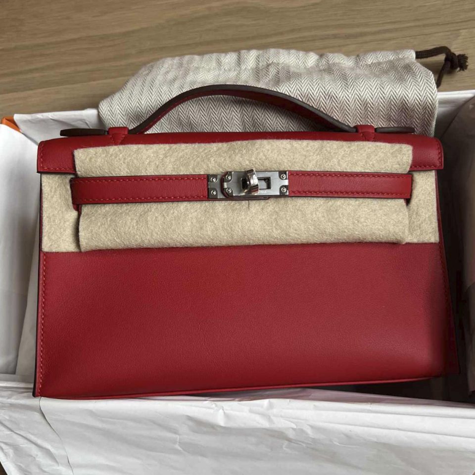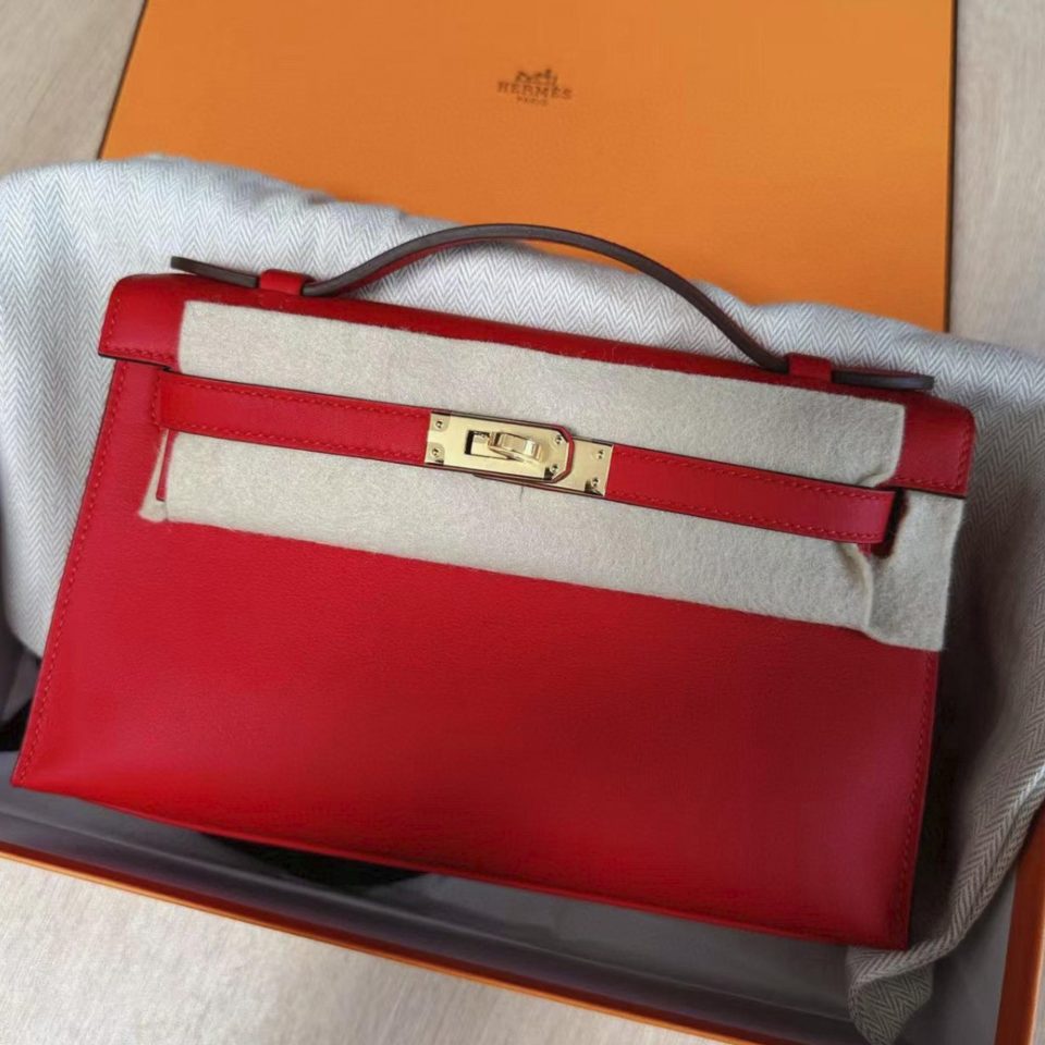 Kelly Pochette Rouge Radieux Swift Palladium Hardware Stamp K