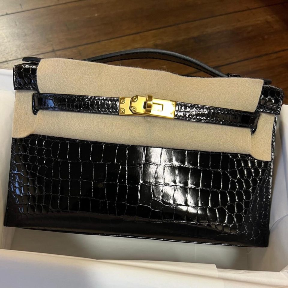Kelly Pochette Black Shiny Gold Hardware Stamp D