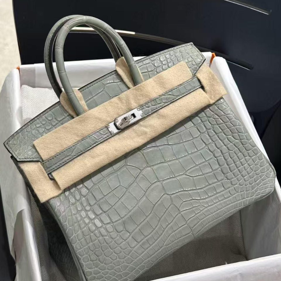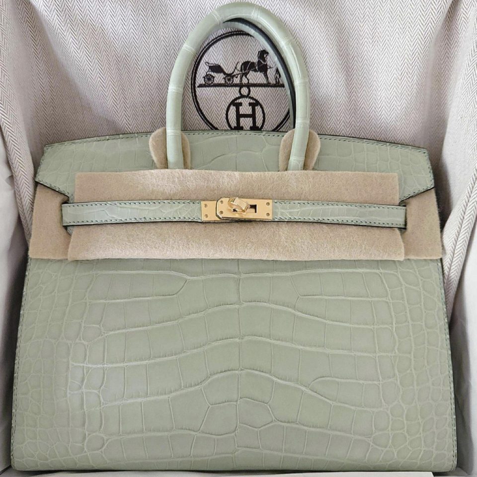 Birkin 25 Vert D’Eau Matte Porosus Gold Hardware Stamp U