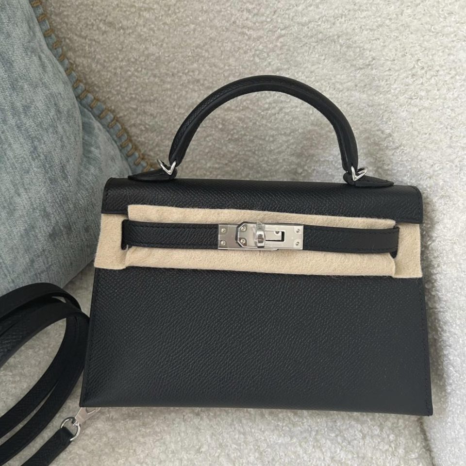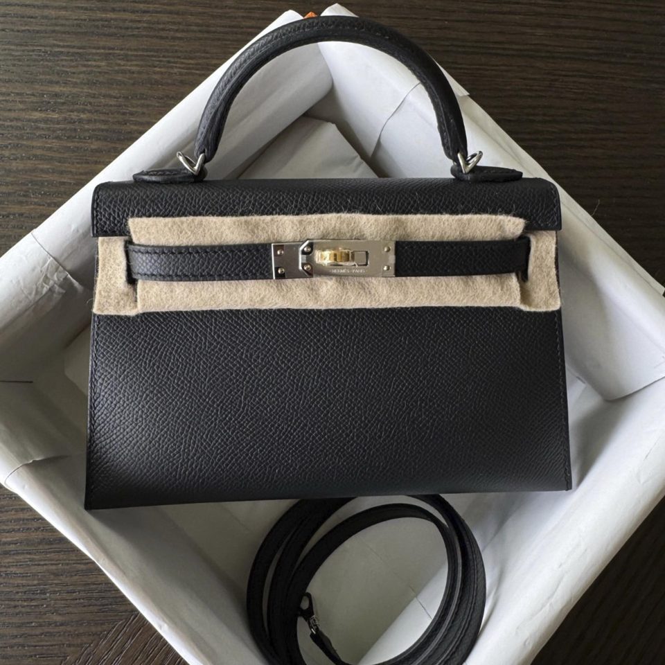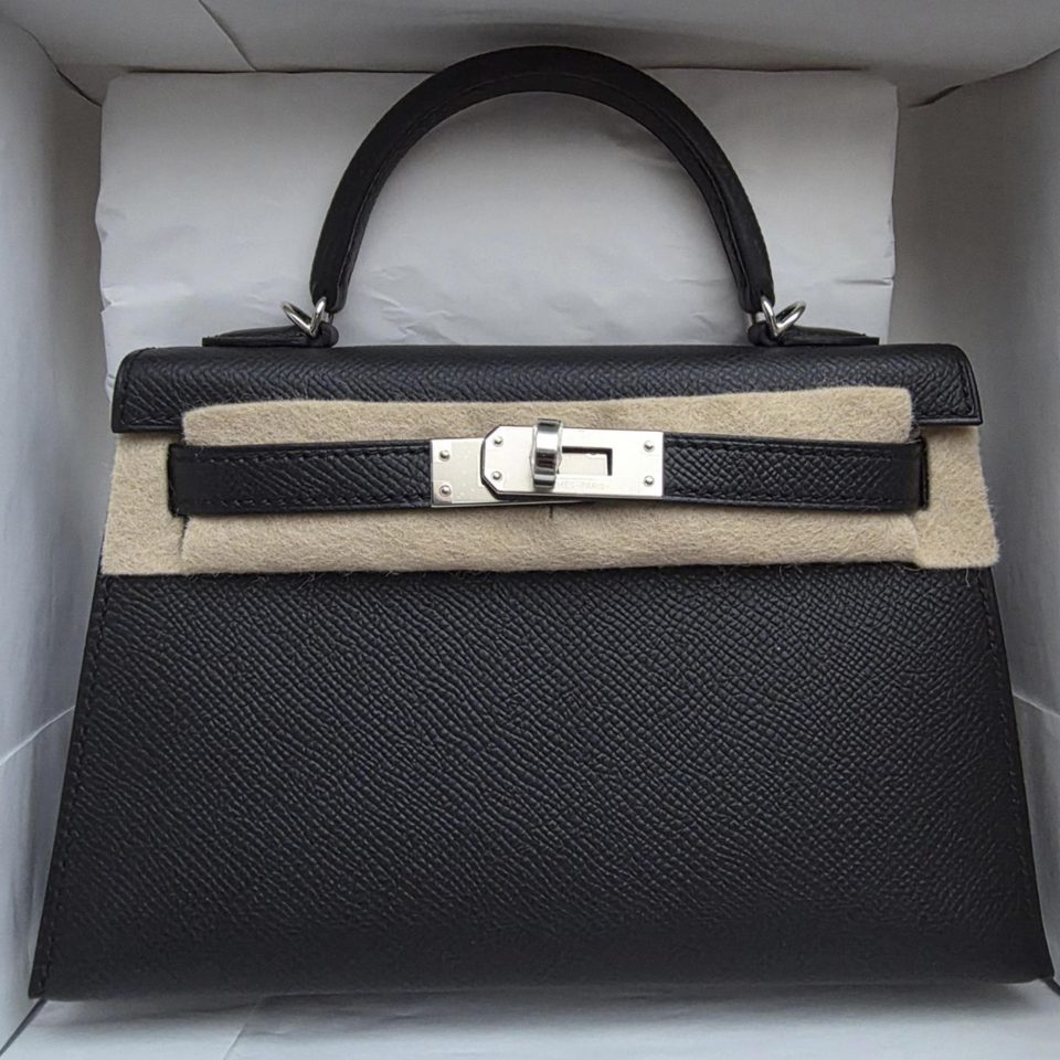 Kelly 20 Mini Black Epsom Palladium Hardware Stamp K
