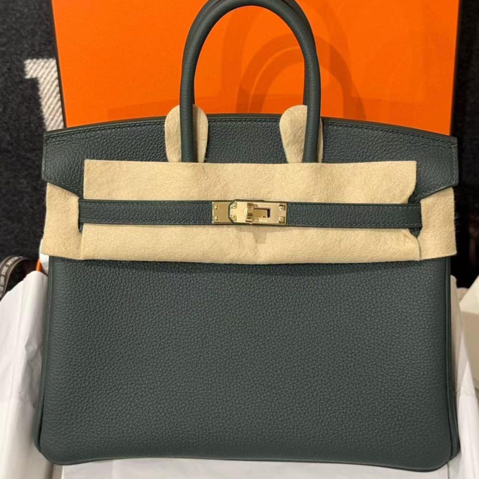 Birkin 25 Vert Fonce Togo Gold Hardware Stamp W
