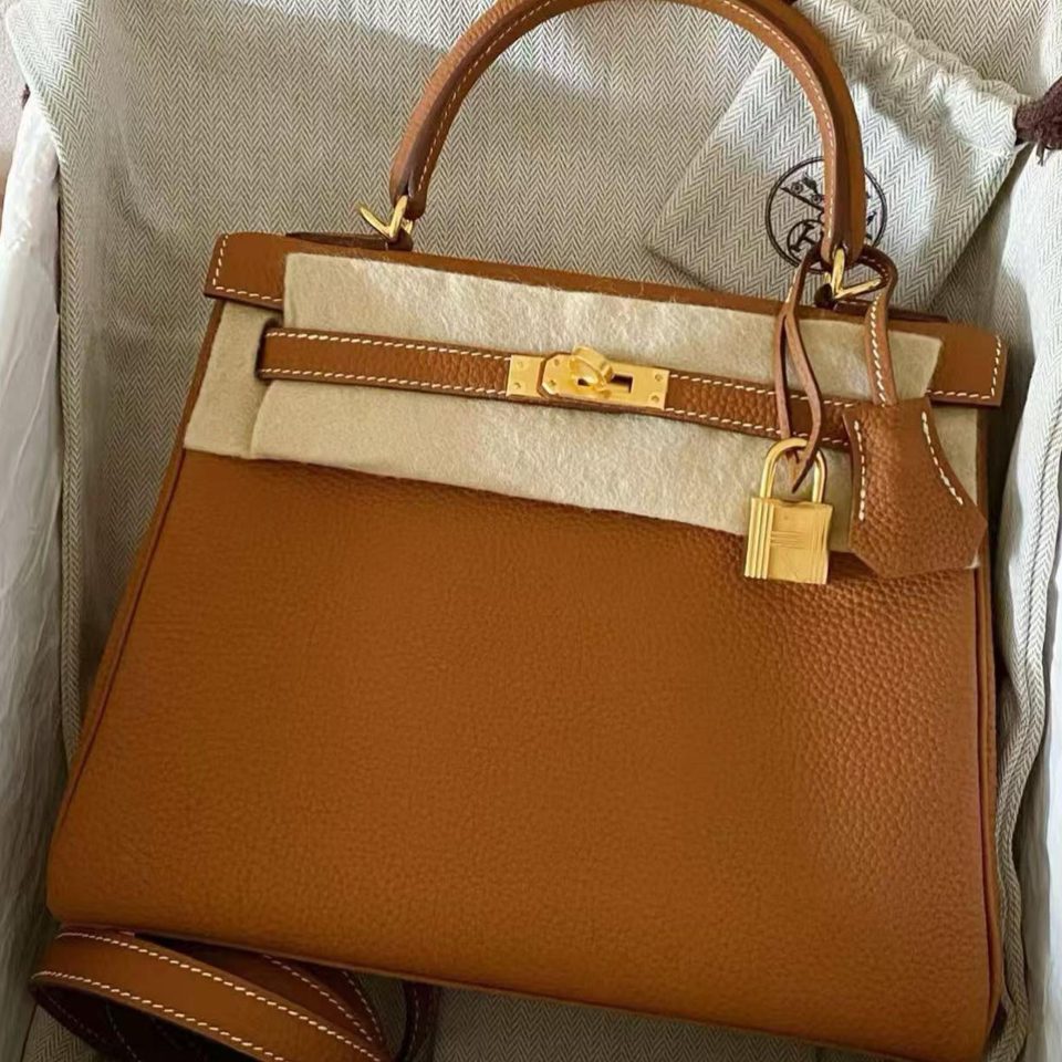 Kelly 25 Orange Togo Gold Hardware Stamp K