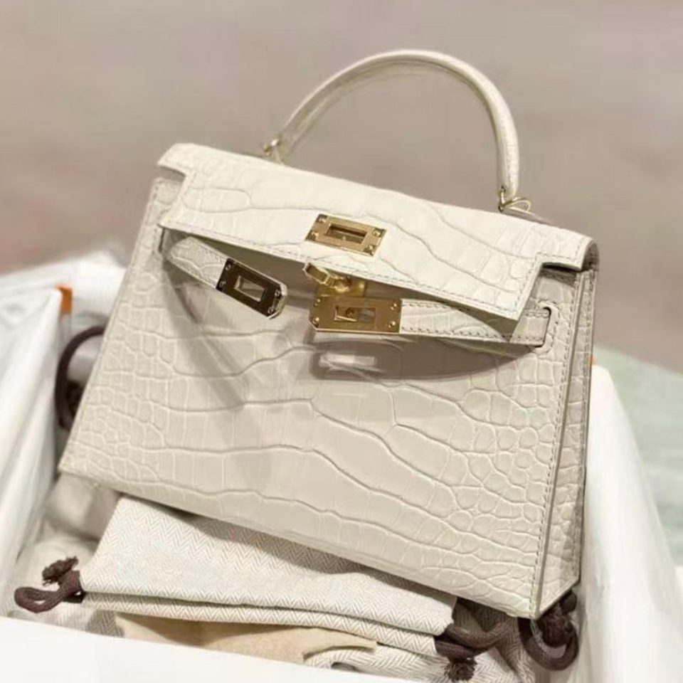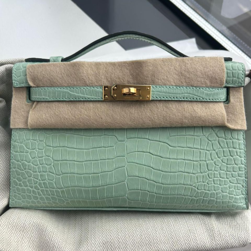 Kelly 20 Mini HSS Vert D’Eau/Gris Perle Matte Permabrass Hardware Stamp B