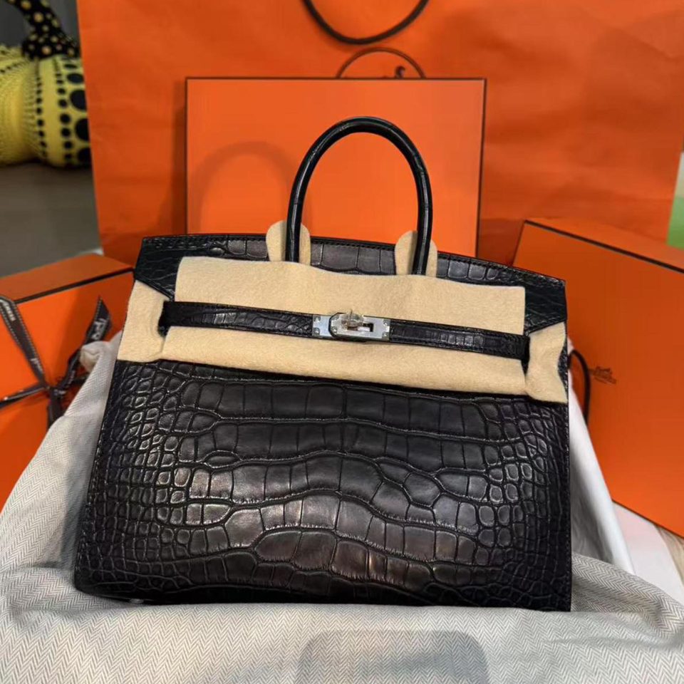Birkin 25 Black Matte Brushed Palladium Hardware Stamp W