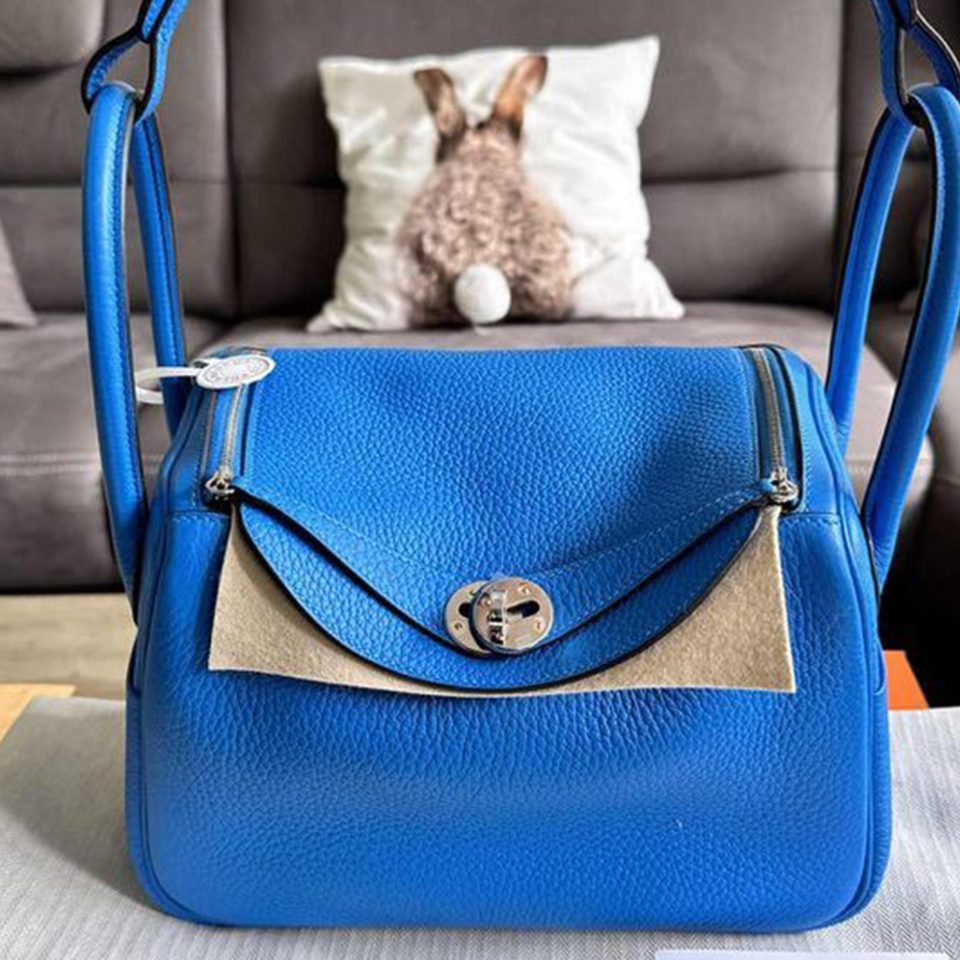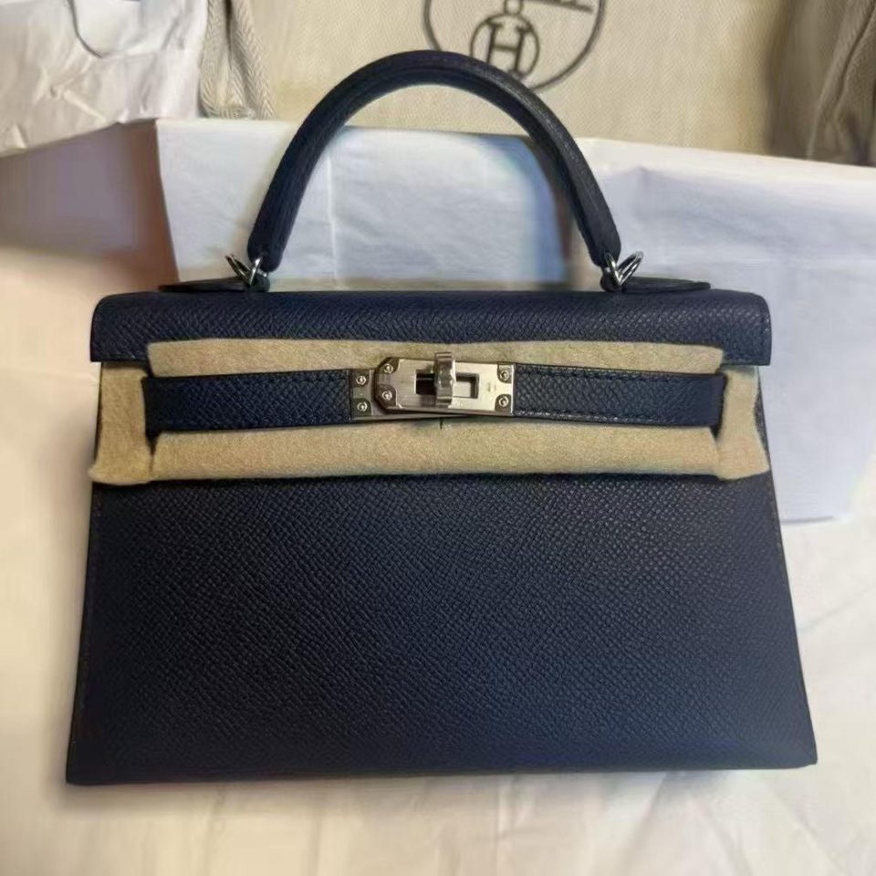 Kelly 20 Mini Cloute Bleu Abyss Box Palladium Hardware stamp W