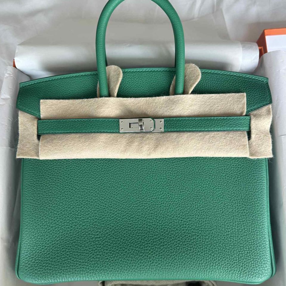 Birkin 25 Togo Vert Fonce Palladium Hardware Stamp W