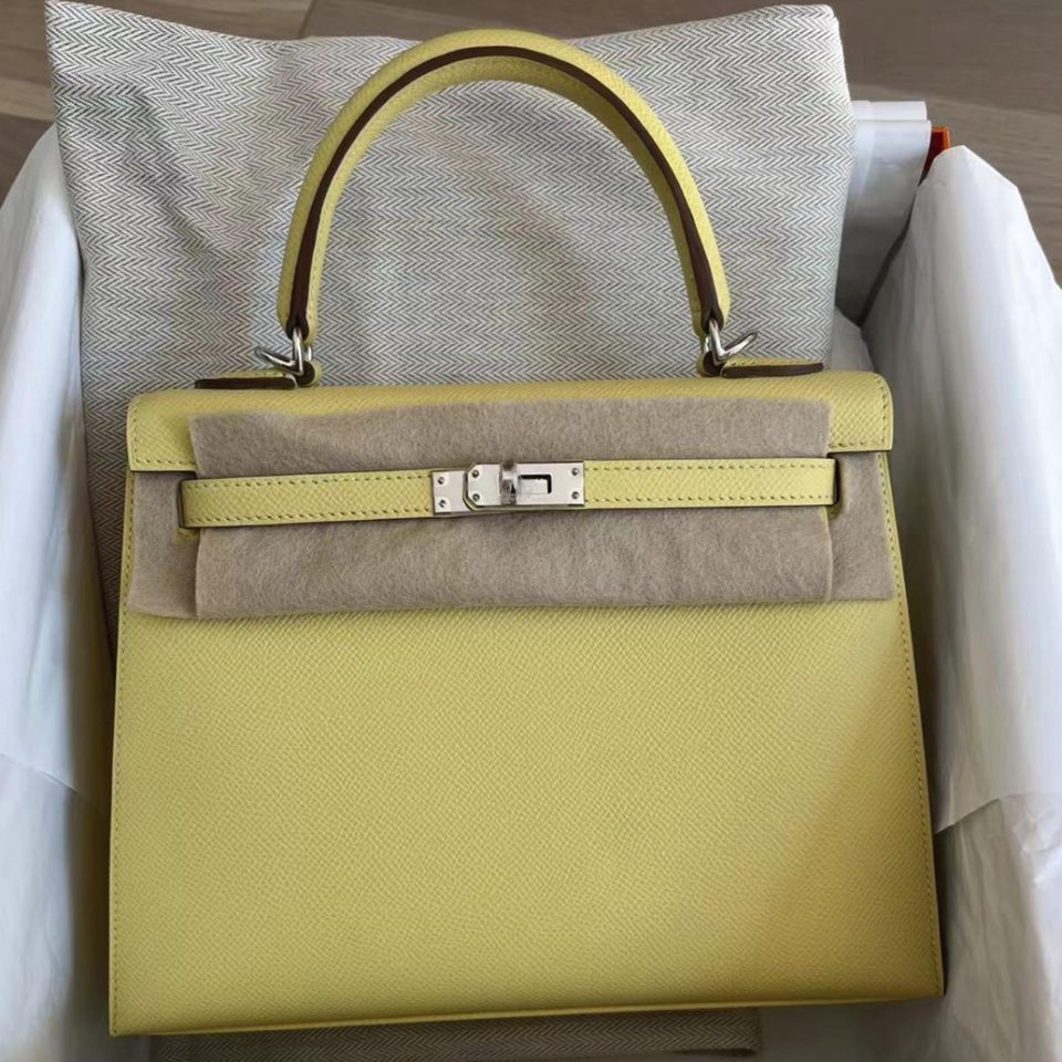 Kelly 25 Jaune Poussin Epsom Palladium Hardware Stamp K