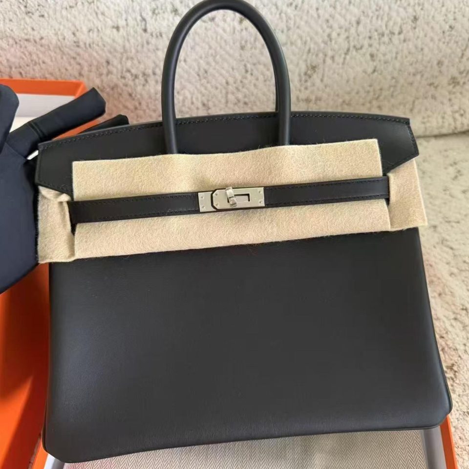 Birkin 25 Black Swift Palladium Hardware Stamp K