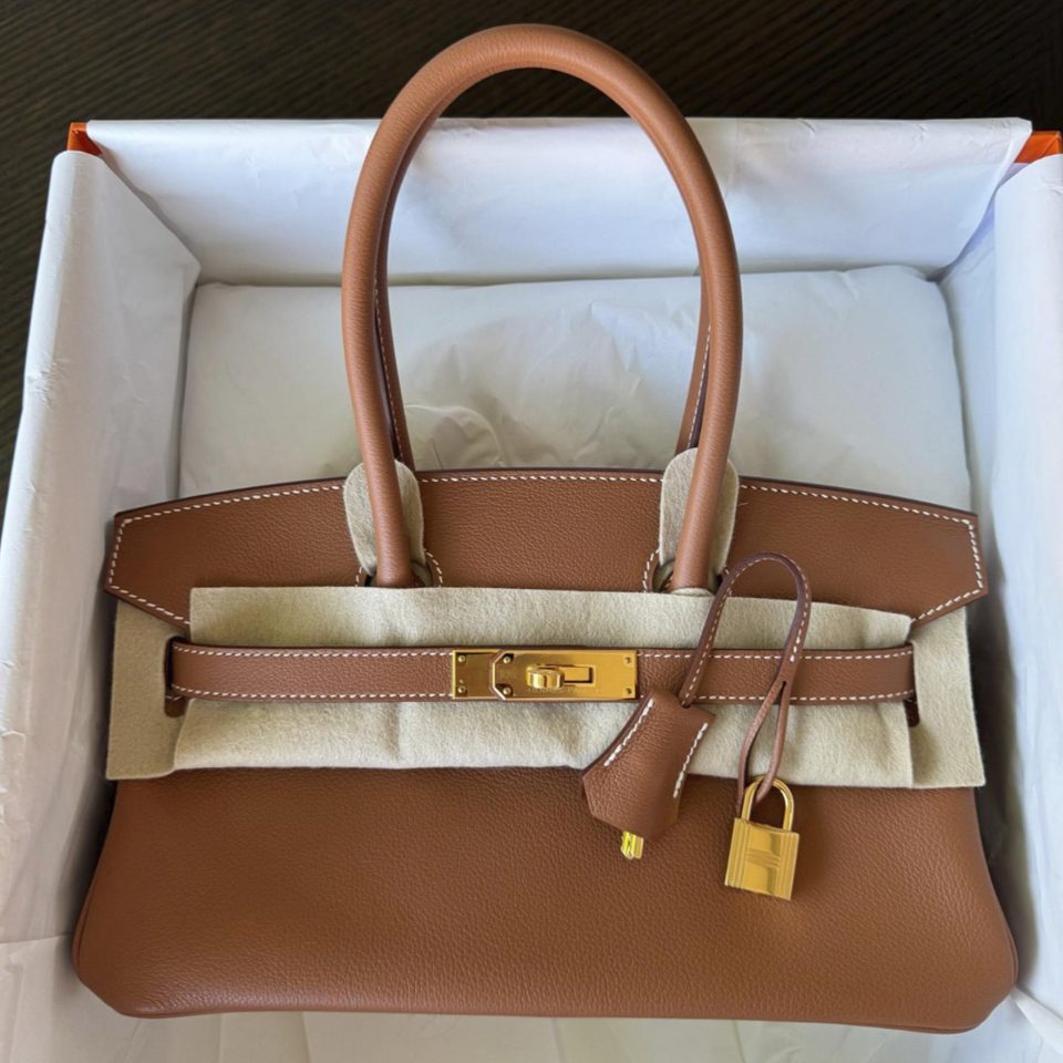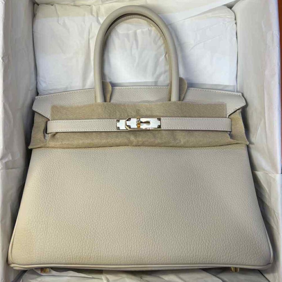 Birkin 30 Gris Neve Togo Gold Hardware Stamp B