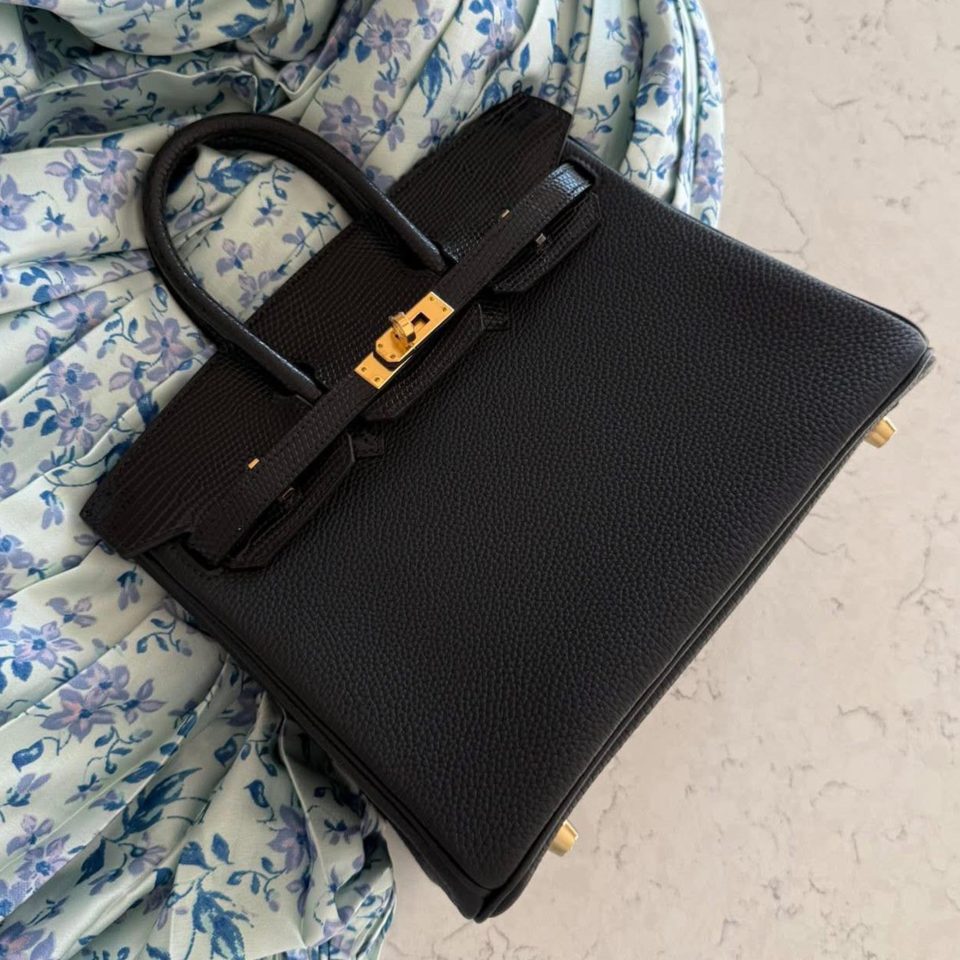 Birkin 25 Touch Black Gold Matte Hardware Stamp B