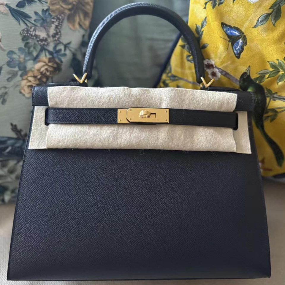Kelly 28 Black Epsom Gold Hardware Stamp K