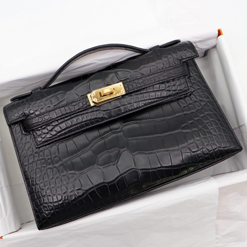 Kelly Pochette Matte Black Gold Hardware Stamp W