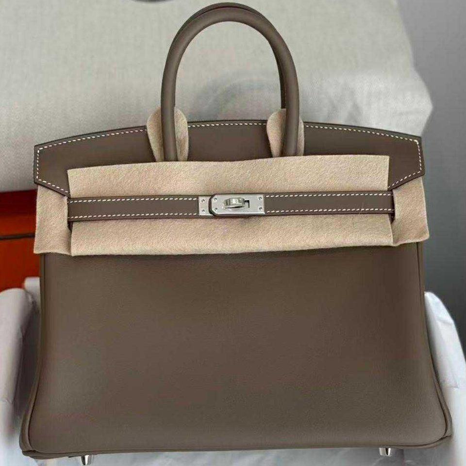 Birkin 25 Etoupe Swift Palladium Hardware Stamp K