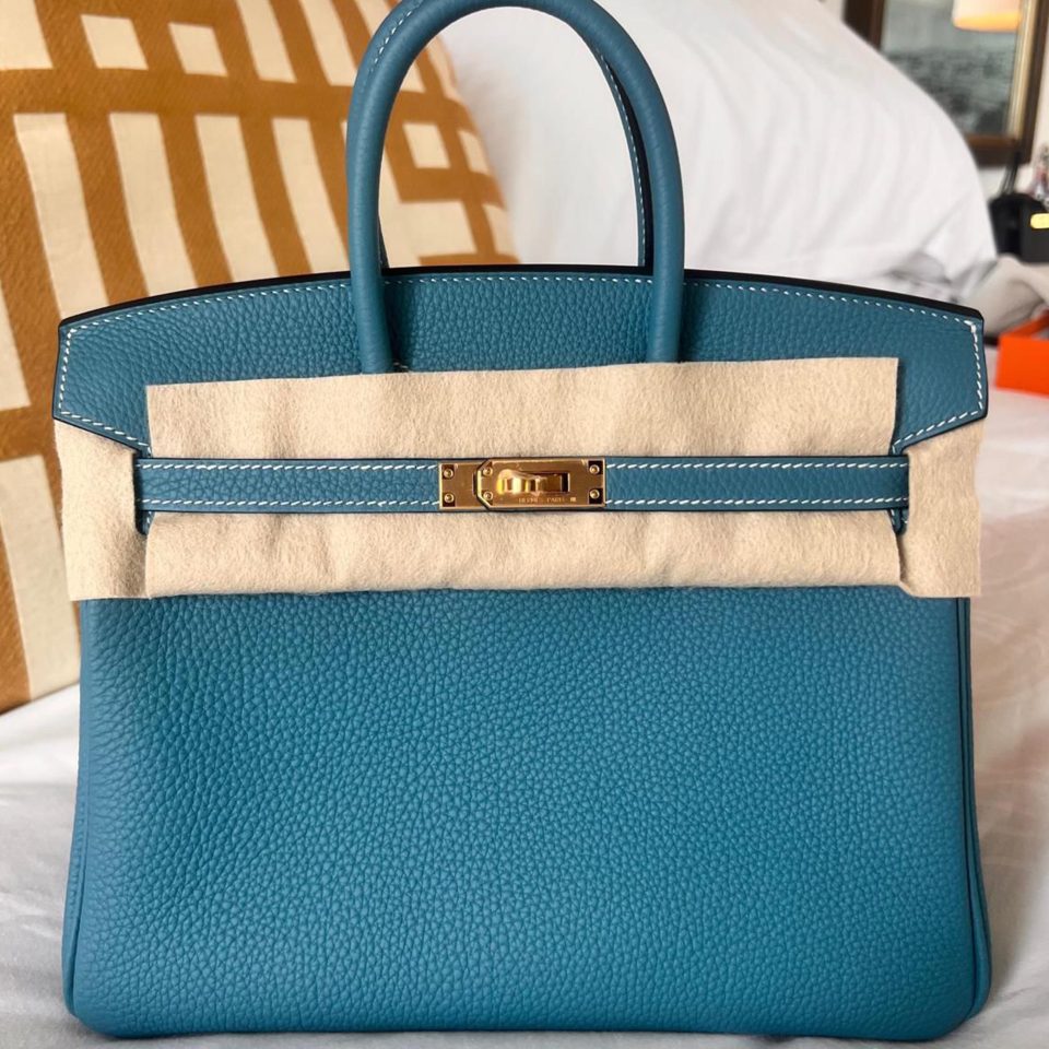 Birkin 25 Blue Jean Togo Gold Hardware Stamp W