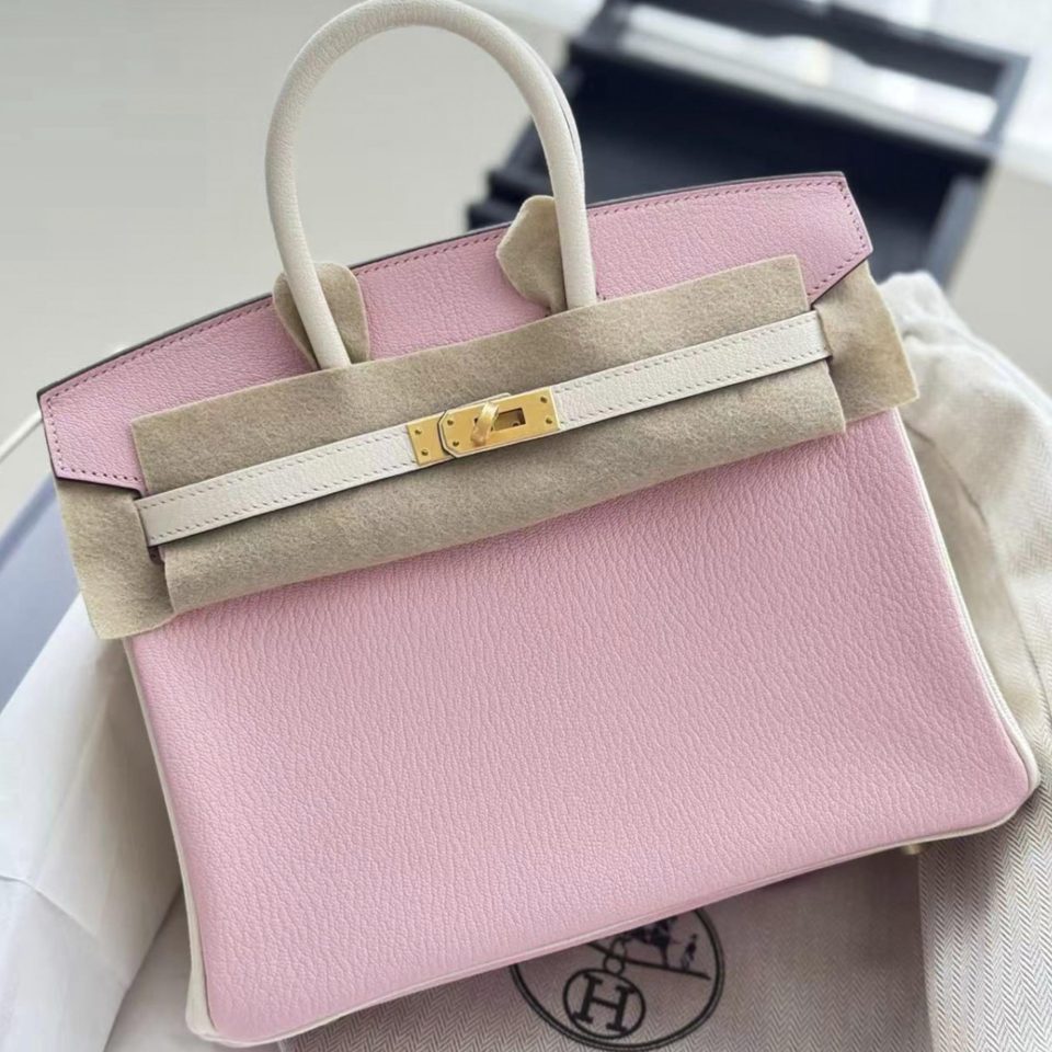 Birkin 25 HSS Craie/Gold Sellier Rose Gold Hardware Stamp K