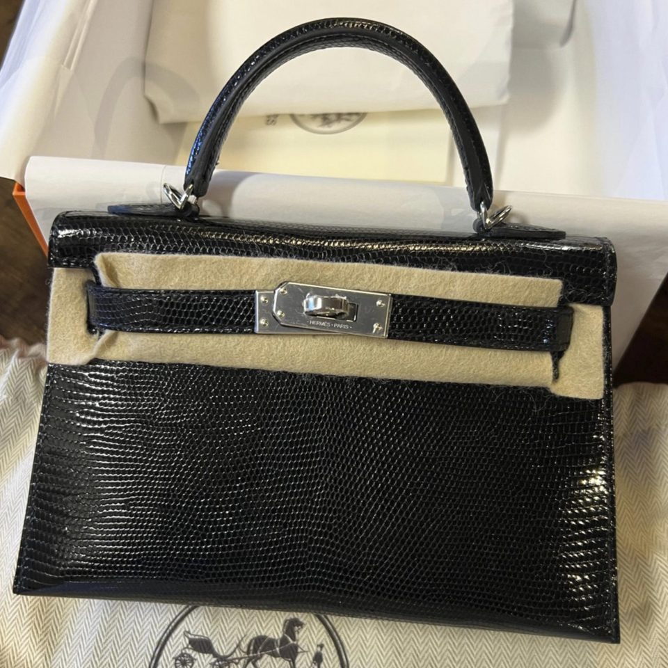 Kelly 20 Mini Black Lizard Gold Hardware Stamp W