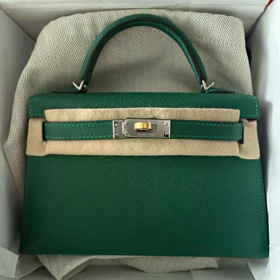 Kelly 20 Mini Vert Moyen Electrum Hardware Stamp W