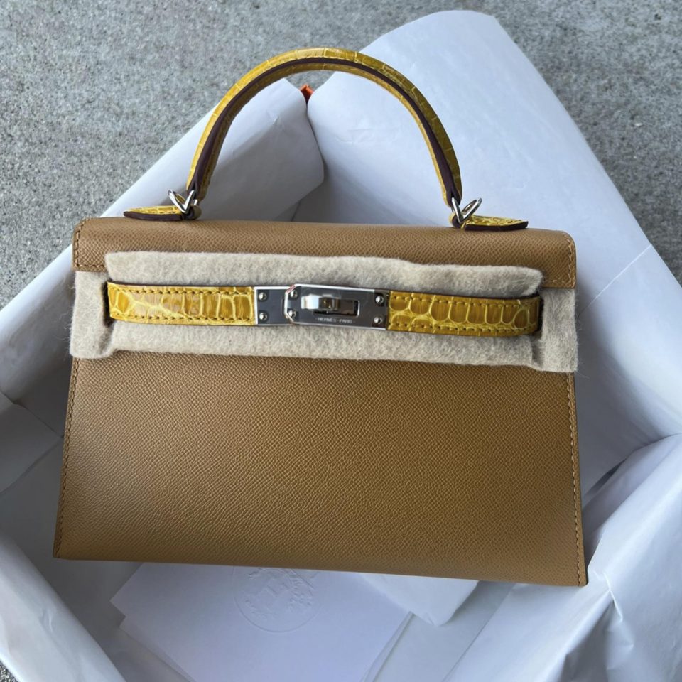 Kelly 20 Mini Touch Sesame/Jaune Amber Epsom Palladium Hardware Stamp K