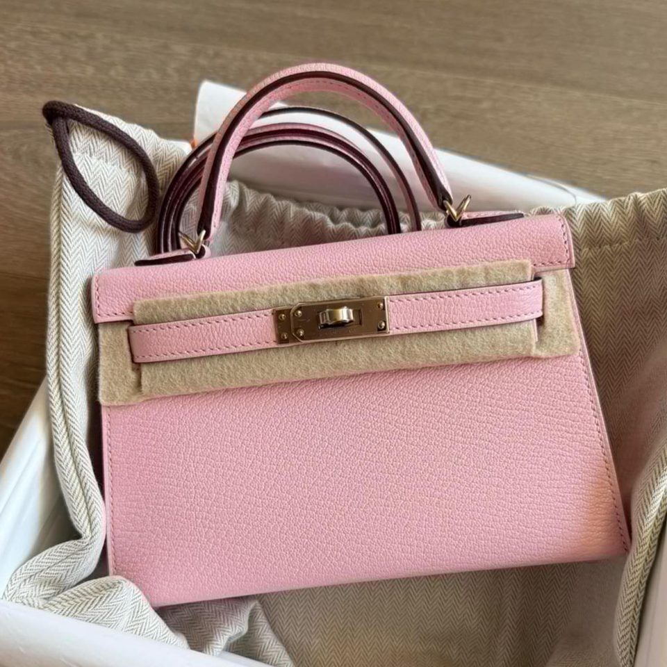 Kelly Pochette Rose Azalae Gold Hardware Stamp C