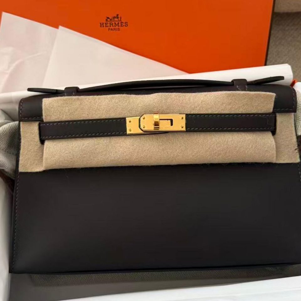 Kelly Pochette Black Swift Gold Hardware Stamp W