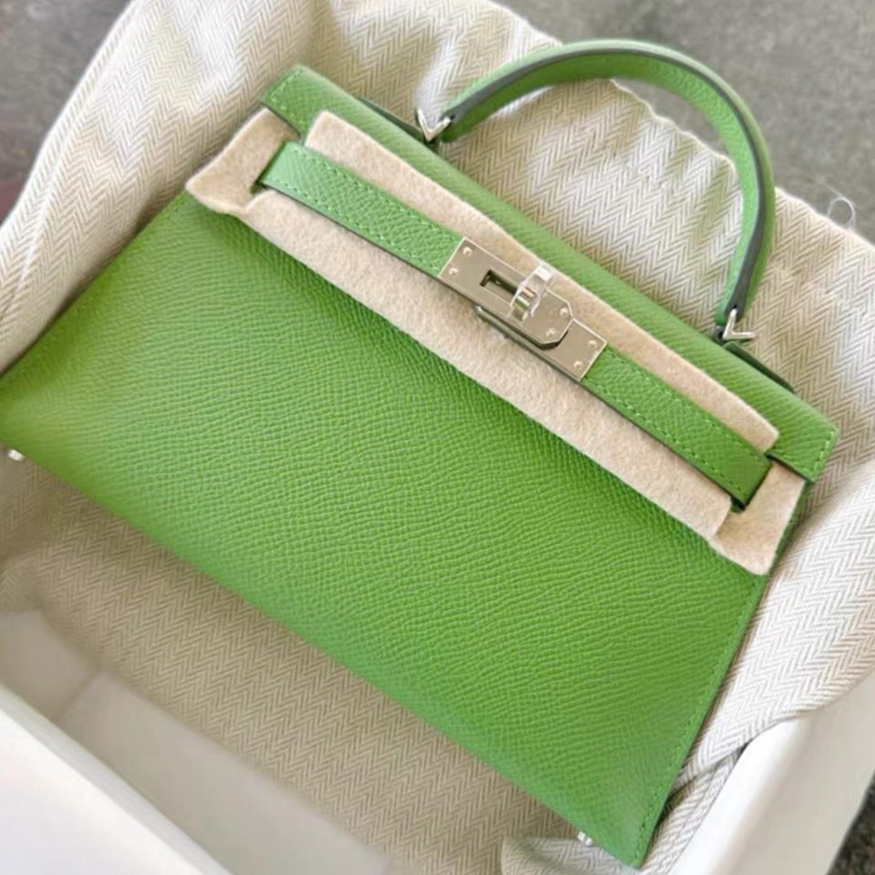 Kelly 20 Mini Vert Yucca Epsom Palladium Hardware Stamp B
