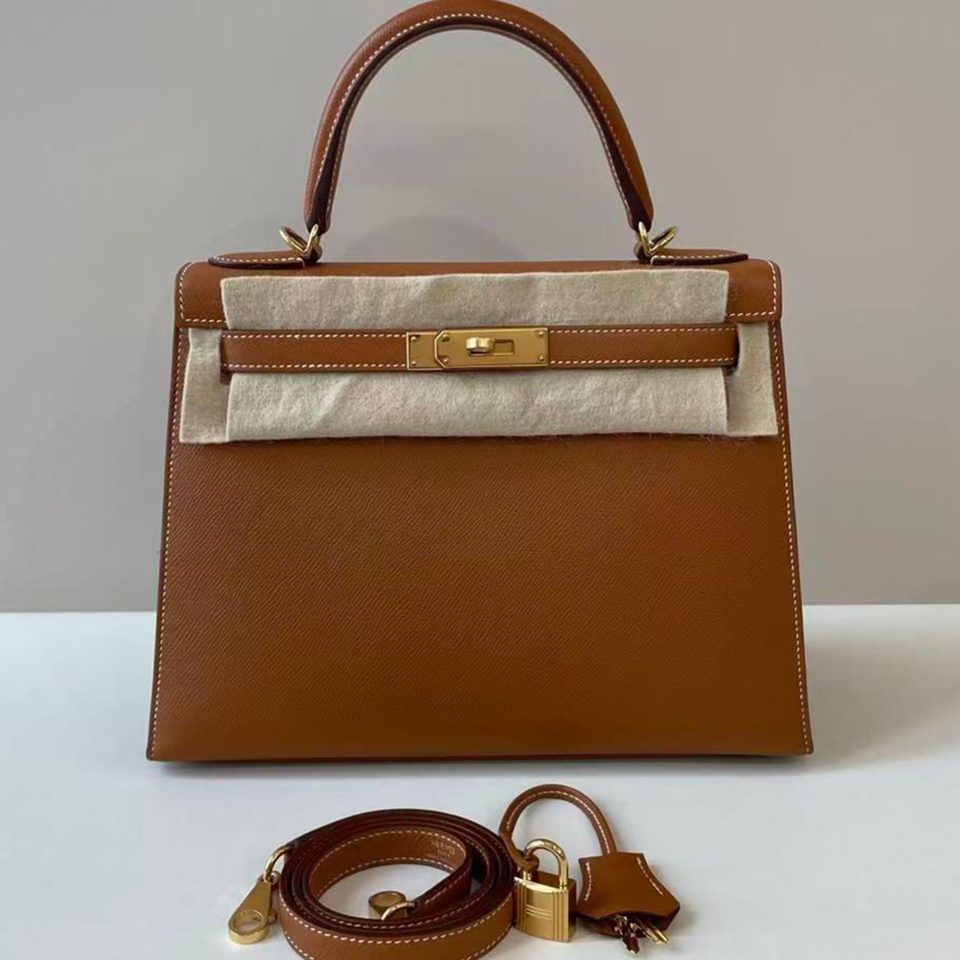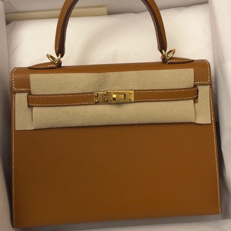 Kelly 28 Gold Epsom Gold Hardware Stamp D