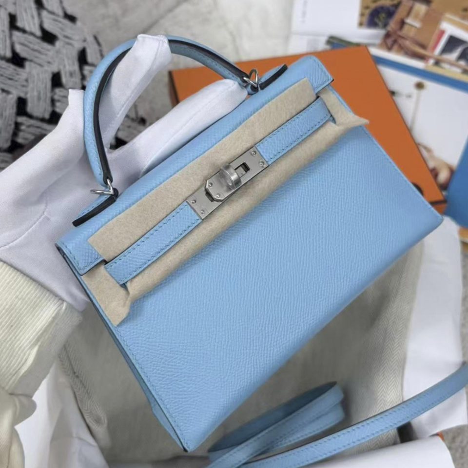 Kelly 20 Mini Blue Celeste Epsom Palladium Hardware Stamp B