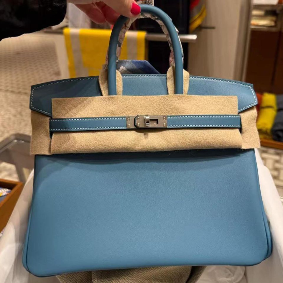 Birkin 25 Blue Jean Swift Palladium Hardware Stamp K