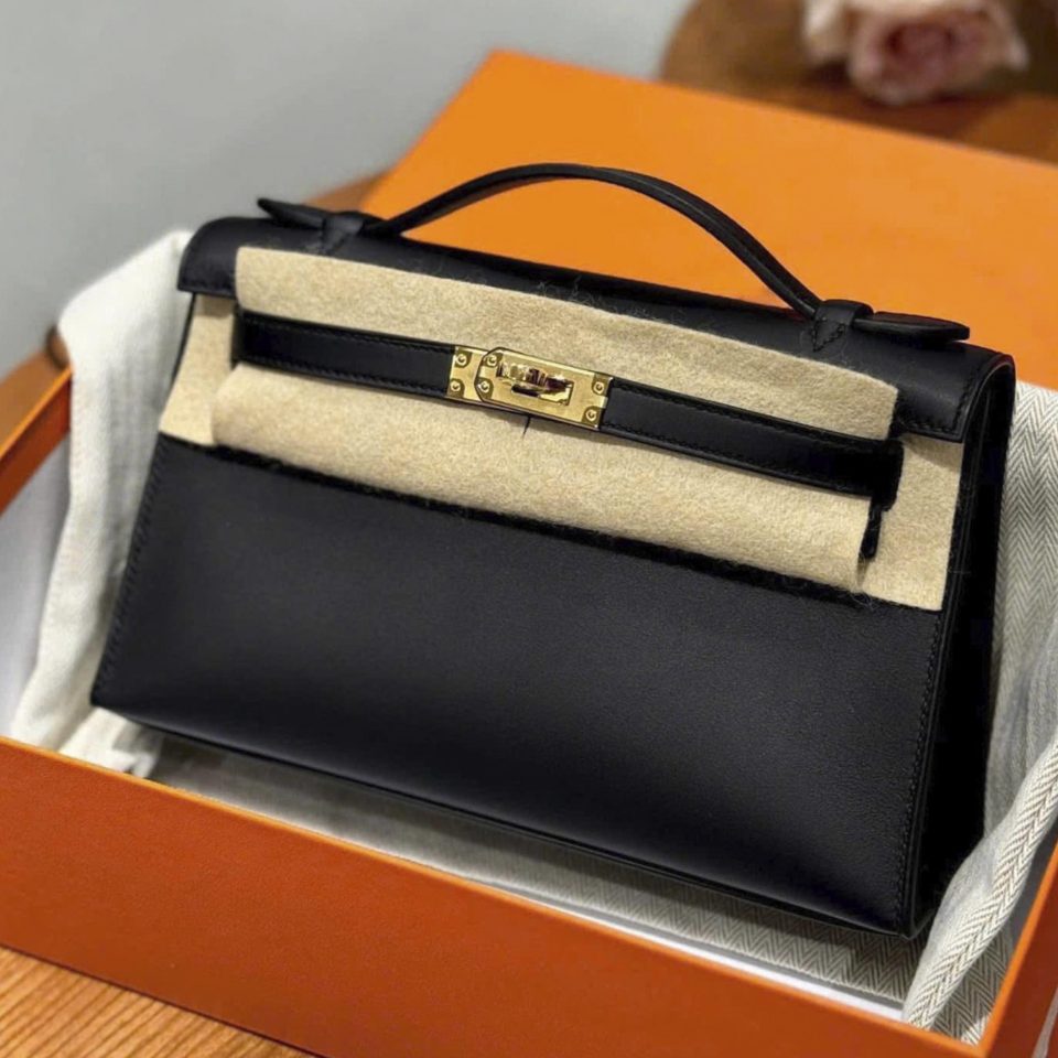 Kelly Pochette Black Swift Gold Hardware Stamp K