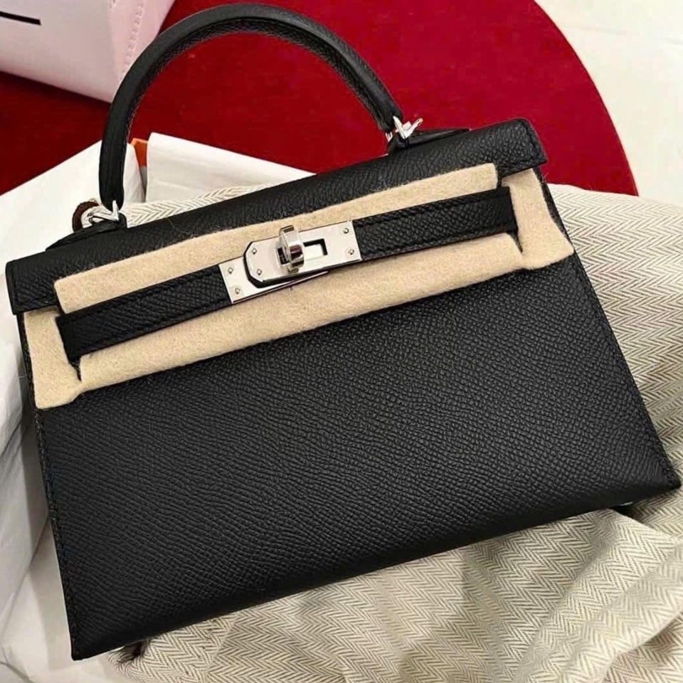 Kelly 20 Mini Black Epsom Palladium Hardware Stamp K