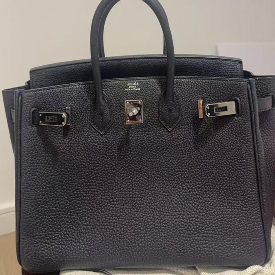 Birkin 25 Blue Togo Palladium Hardware Stamp A