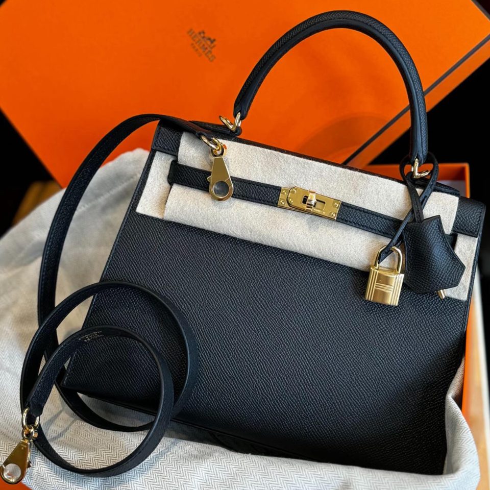 Kelly 25 Black Epsom Gold Hardware Stamp W