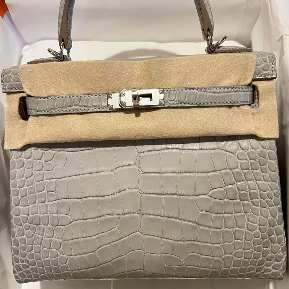 Kelly 25 Gris Perle Matte Palladium Hardware Stamp W